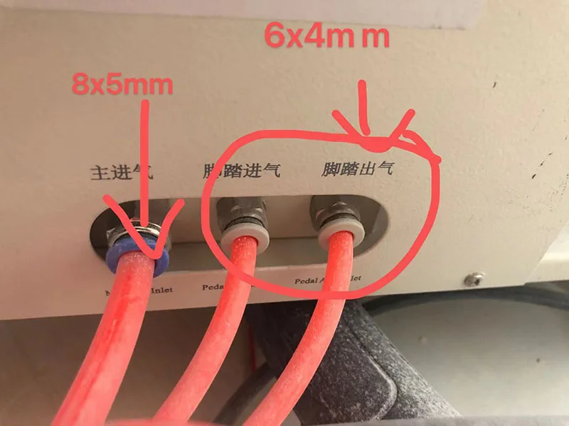 2. Insert the power cord and foot switch tube into the corresponding jacks.