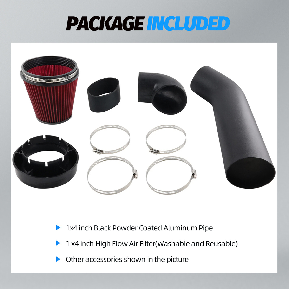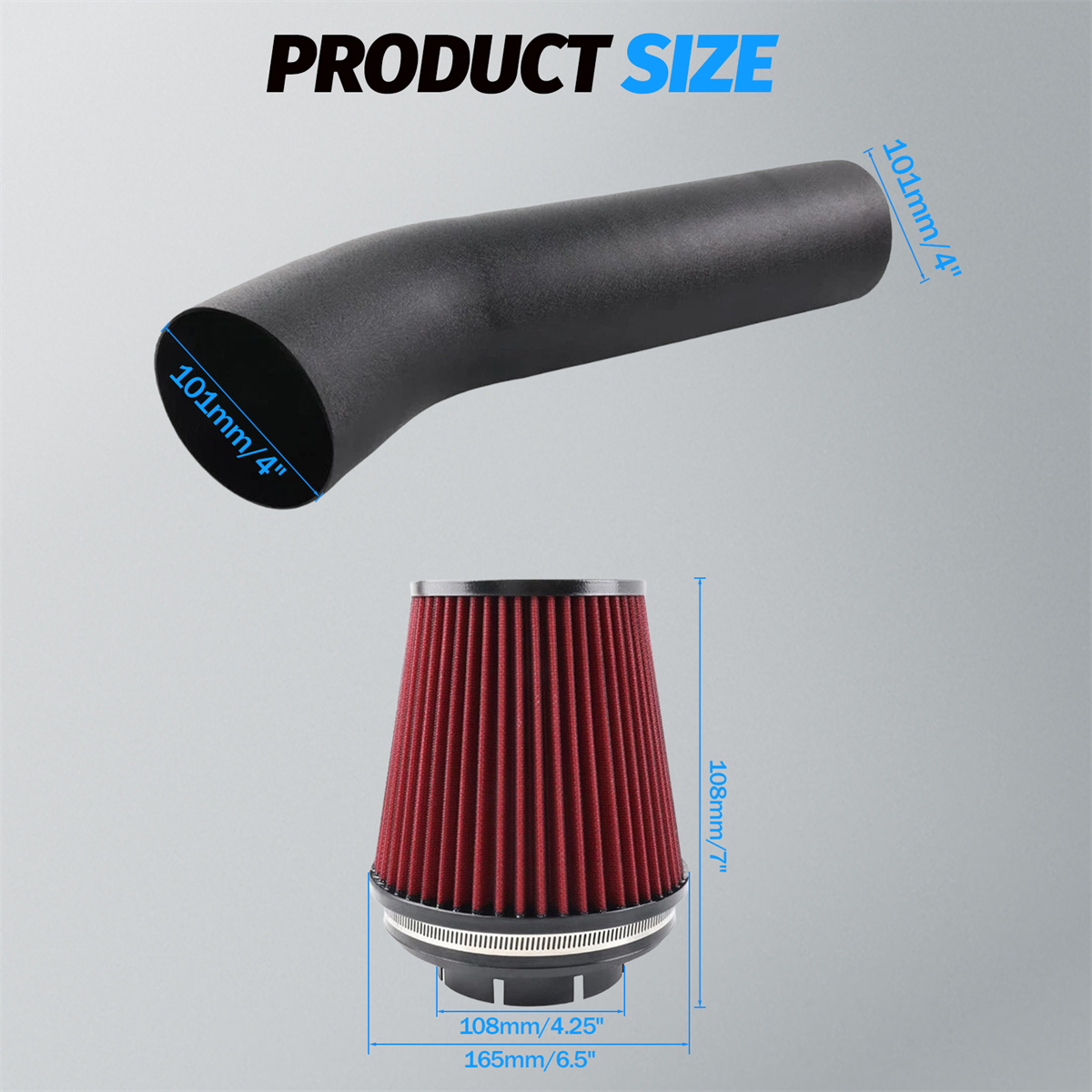 【4” CNC Bent Aluminum Intake Tube】Provides smooth airflow delivery. Structurally robust, impact and vibration resistant,