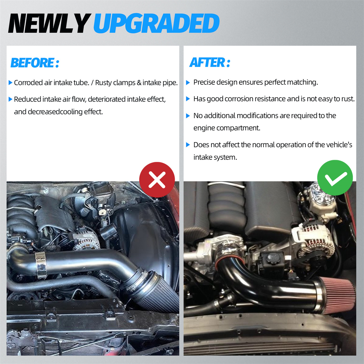 【High Performance】The cold air intake systems provide a less restrictive path for airflow, increasing the volume of cool,