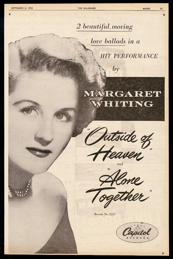 1952 Margaret Whiting photo Outside of Heaven record release BIG vintage ad