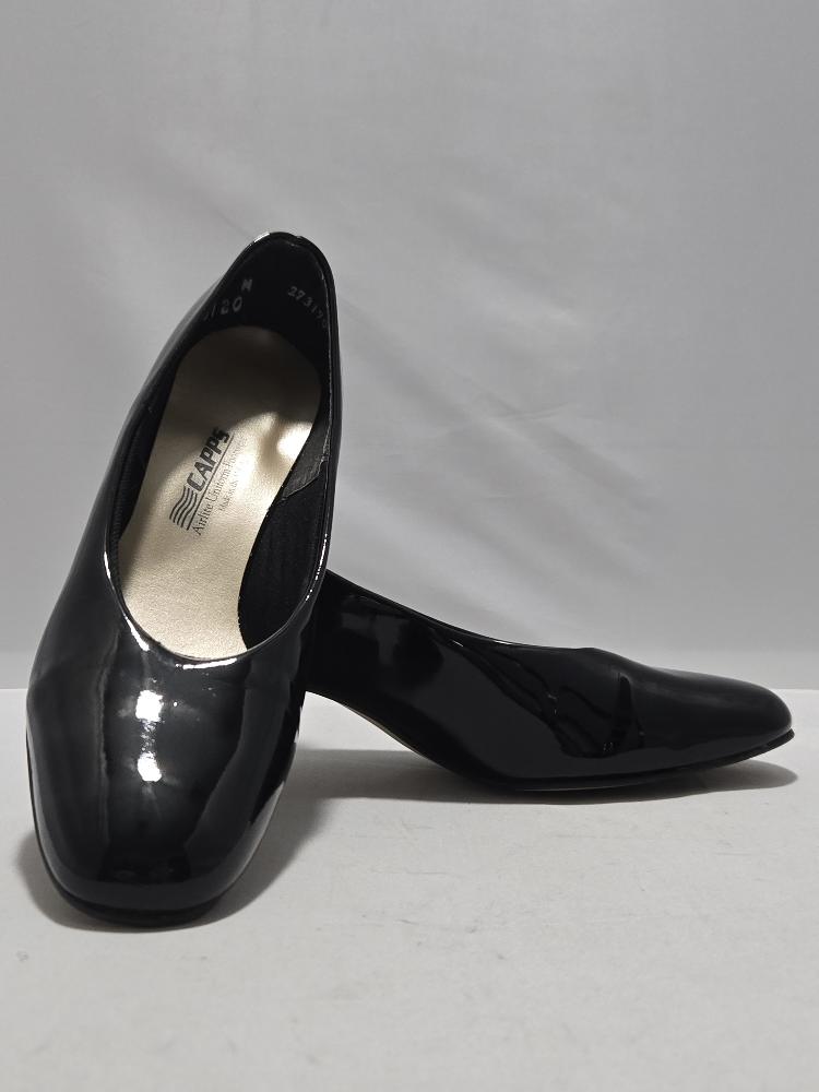 These Capps Womens Military Dress Shoes are the classic black patent high heels worn for formal uniform functions, inspections, ROTC/JROTC events, and dress occasions.