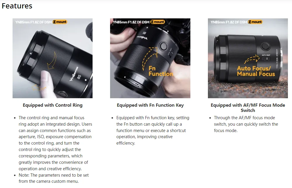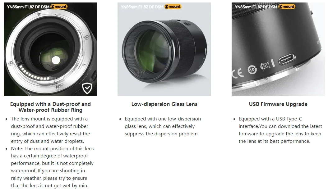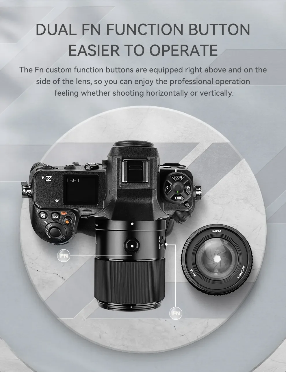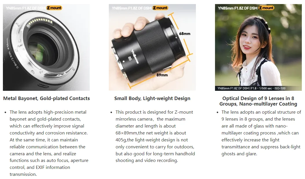 YONGNUO YN85MM F1.8Z DF DSM Lens is specially designed for Ni-kon Z-mount Cameras, the filter diameter is 58mm.