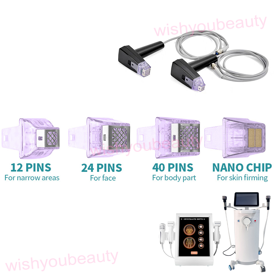 Crystallite head to penetrate into the skin at different depths of the target tissue (between 0.5-7mm), providing Minimally invasive treatment for deep 8mm subcutaneous adipose tissue remodeling, thermal effect that penetrates subcutaneous tissue up to 7mm + additional 1mm depth, aimed at remodeling collagen and coagulating adipose tissue.