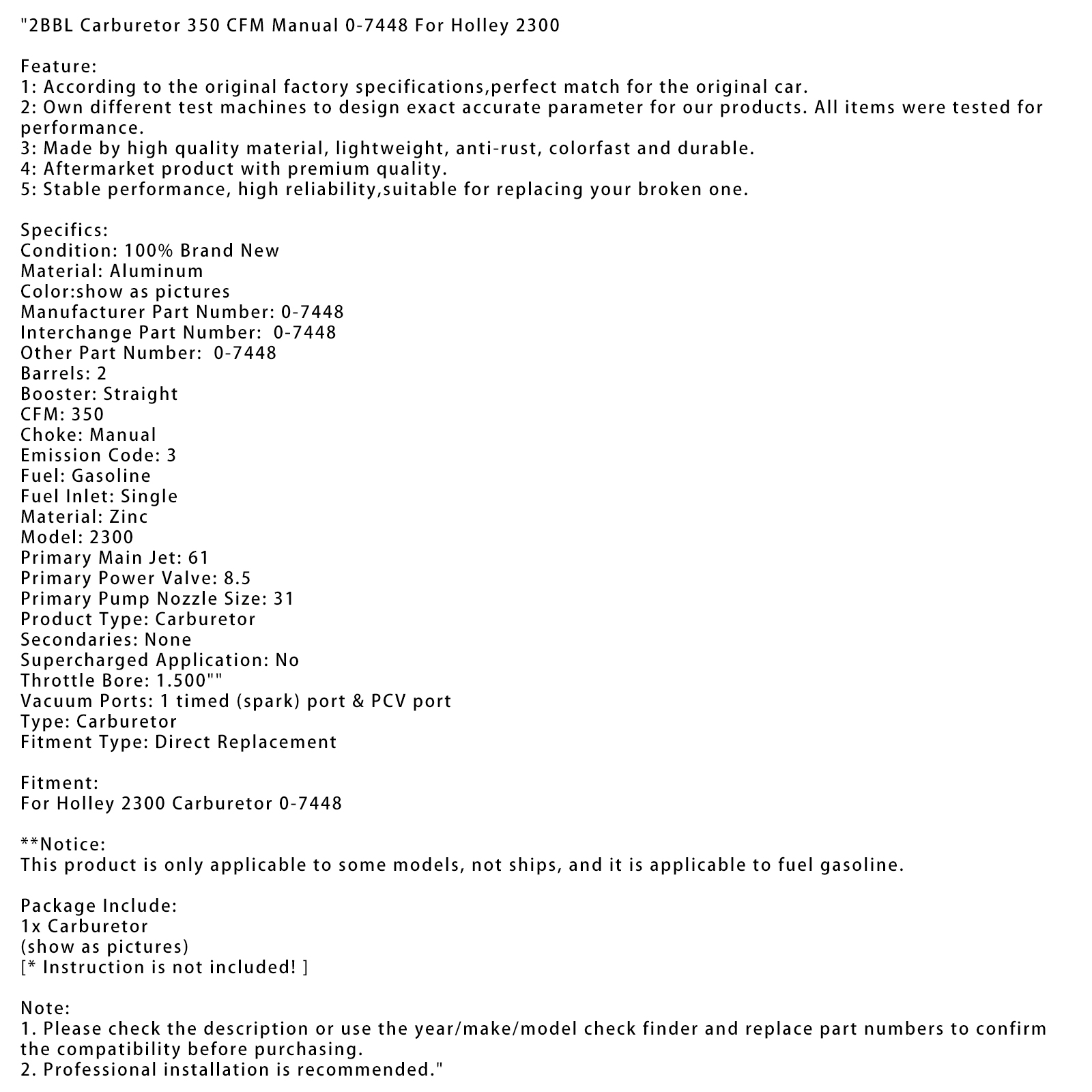 • [YEAR] [MAKE] [MODEL] [ENGINE] matches the buyer's vehicle