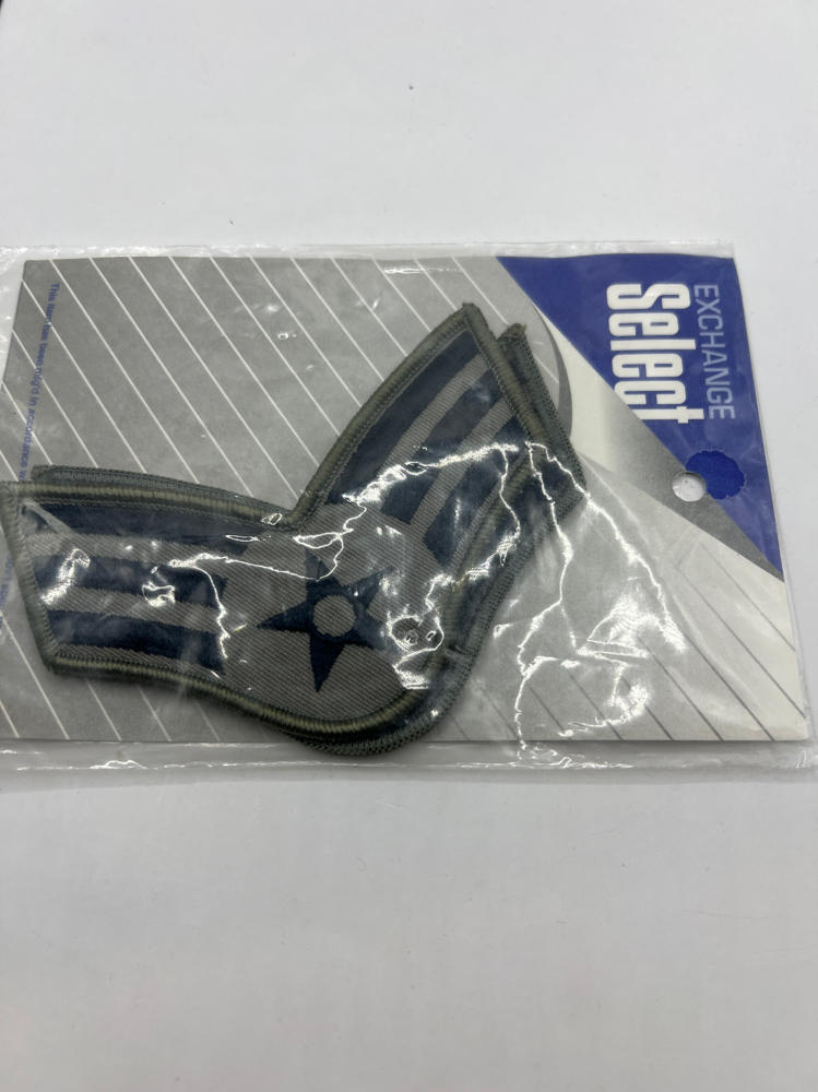 Authentic U.S. Air Force Senior Airman (SrA) E-4 rank chevron patches in ABU (Airman Battle Uniform) pattern. This is a matching large-size pair, correct for ABU uniforms.