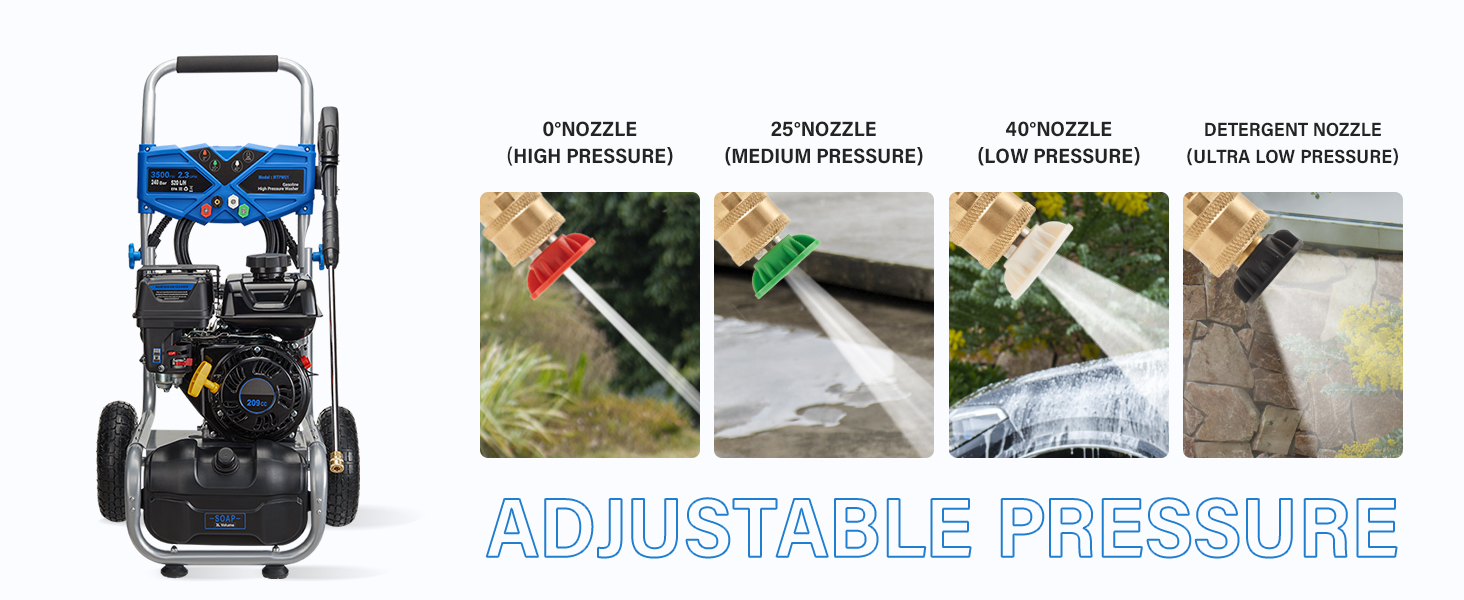 Versatile & Easy to Move: 4 QC nozzles (0°, 25°, 40°, and soap) to clean houses, wood, cars, boats, decks, and siding with just this pressure washer. Efurden gas pressure washers include Persistent 10" wheels, perfect for any terrain.