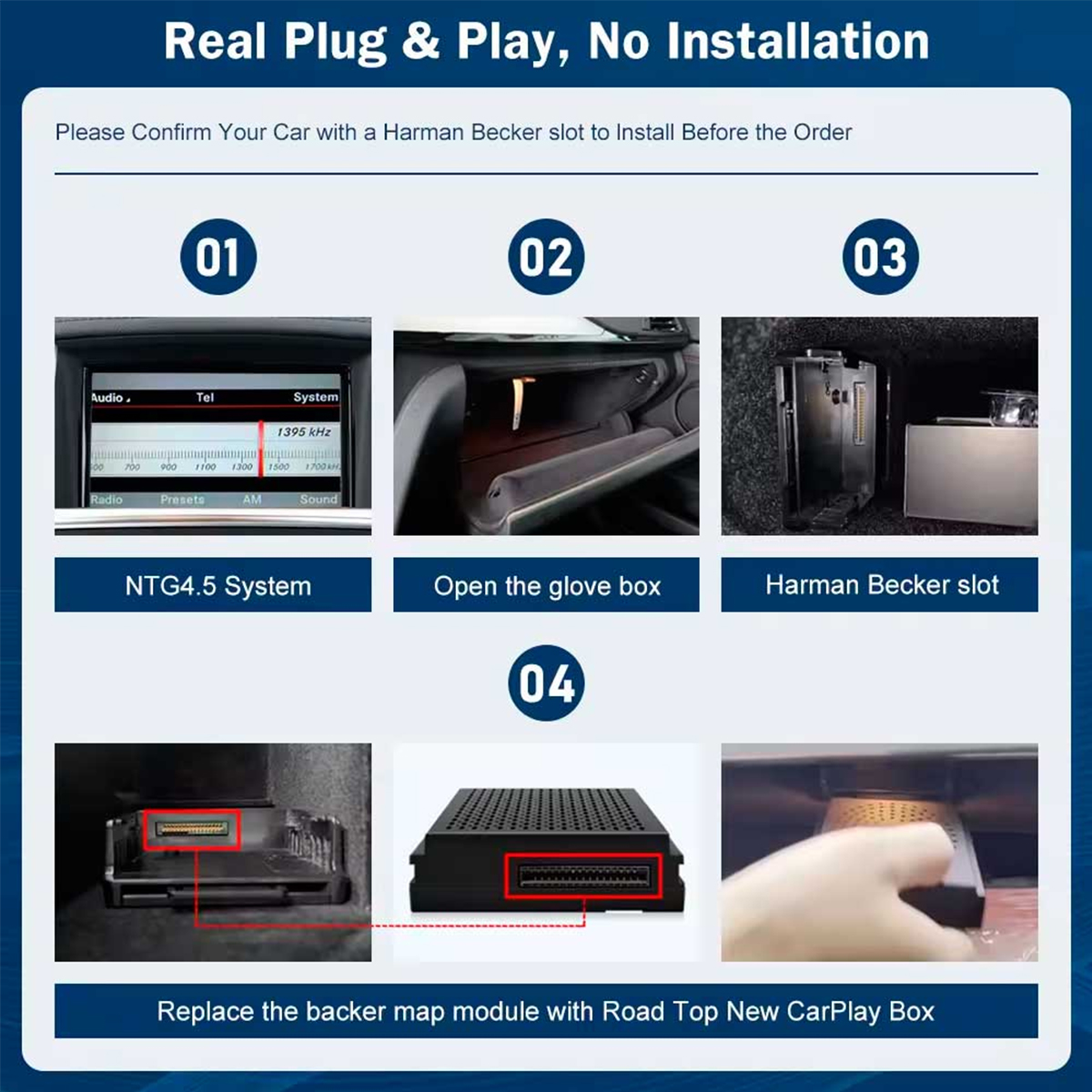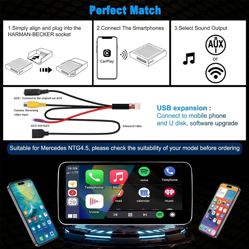 About this Iteam:Wireless CarPlay Upgrade Module ONLY Compatible for Mercedes-Benz NTG 4.5 System with Harman BECKER Navi-Dock Year 2011-2015 All Vehicles
