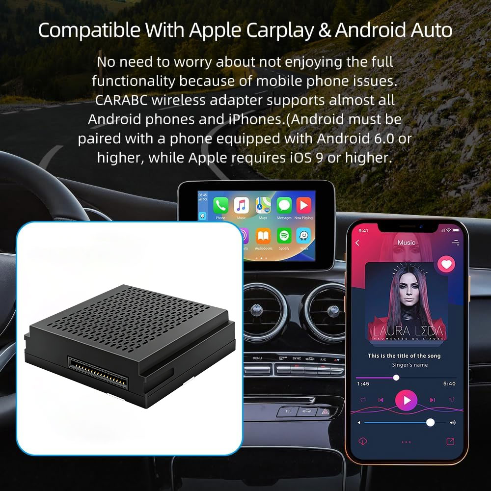 1.Compatible phones: Compatible for iPhone 6 and above, iOS10 and above. Compatible for Google and for phones with Android 10 and above, other Android phones requires Android 11 or above (support 5G WiFi) to support wireless Android Auto. Special attention: NOT compatible for Huawei phones at all.