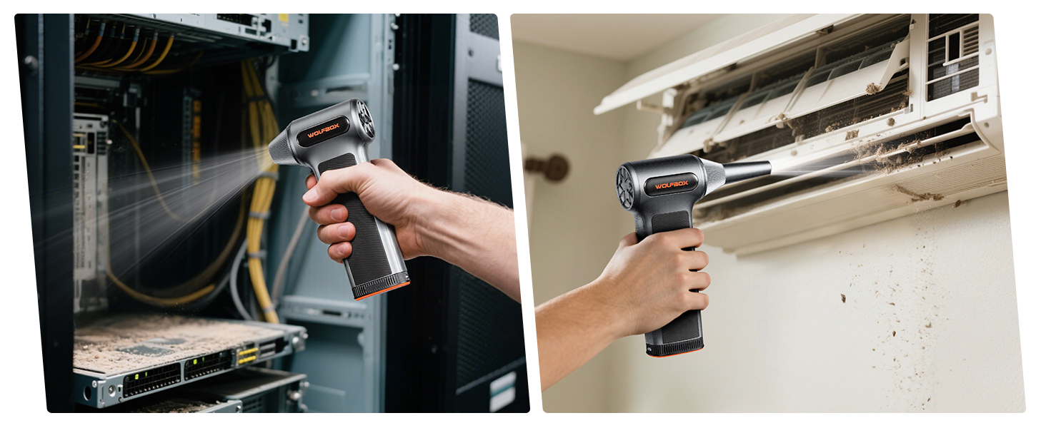 Schluss mit schmutzigen Tastaturen, staubigen PCs und schwer erreichbaren elektronischen Geräten! Dieser elektrische Druckluftreiniger vereint Leistung, Mobilität und Komfort in einem kompakten Gerät. Sein bürstenloser Hochgeschwindigkeitsmotor entfernt Staub und Schmutz präzise, während der herausnehmbare Akku für unterbrechungsfreies Reinigen sorgt.