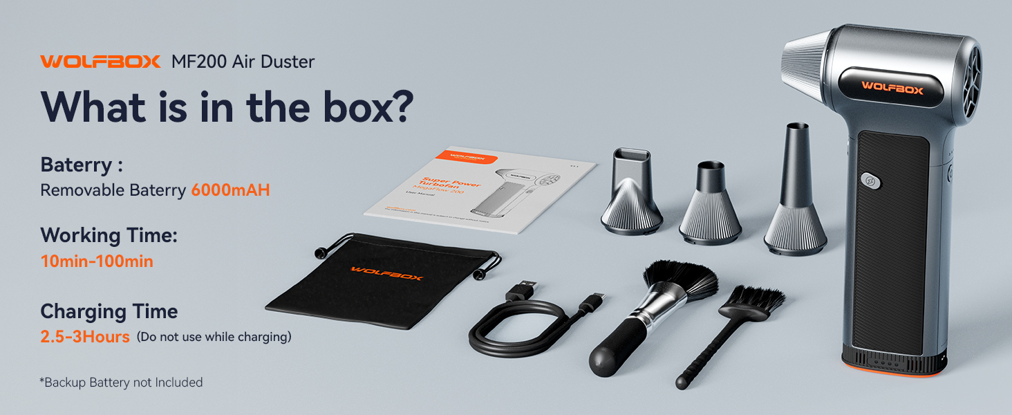 Ob Reinigung von Elektronik im Innenbereich oder Outdoor-Ausrüstung unterwegs – die mitgelieferten Düsen und Bürsten machen jede Aufgabe einfach und effizient. Dieser langlebige und wiederverwendbare Druckluftreiniger ist eine umweltfreundliche und kostengünstige Alternative zu herkömmlichen Druckluftdosen.