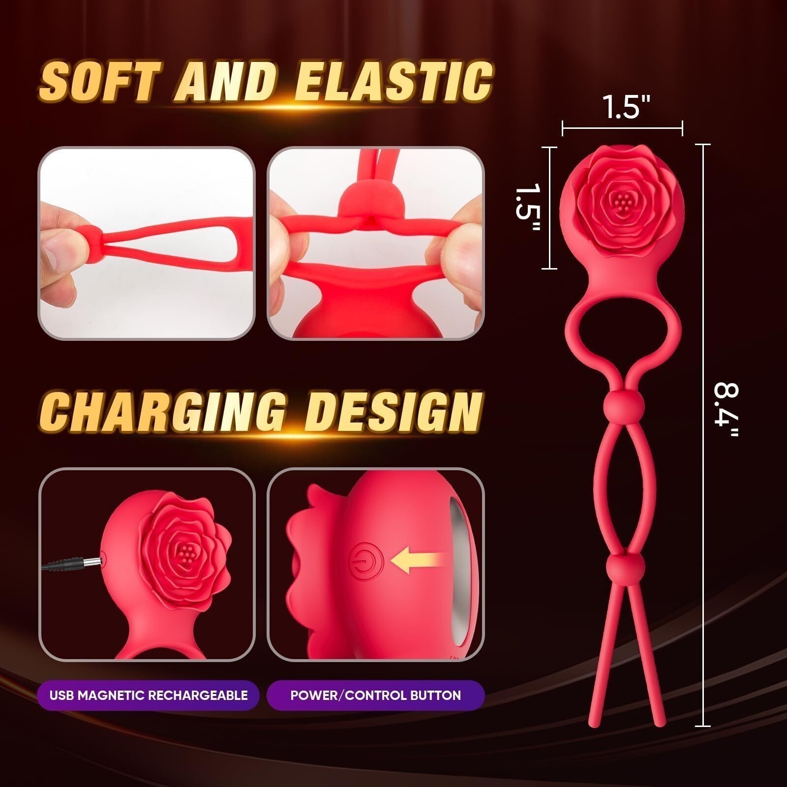 【Sync Blended Penis, Testicle & C Spot Stimulus】- Experience unmatched pleasure with simultaneous C spot vibration, perineum & testicle massage, and penis stimulation. One ring for shaft erection, another for ball constriction. The rose-shaped clitoris vibrator unleashes powerful vibrations when you tightly grind it against her clit. Experience an explosion of synchronized pleasure as all erogenous zones are stimulated simultaneously, driving you both to the brink of ecstasy.