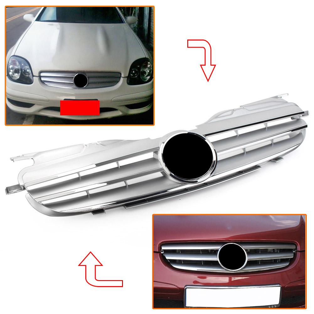 For R170 W170 SLK Class 1998-04 Mercedes Benz Silver 3-PIN Front Upper Grill Feature: -Guaranteed Fitment -Direct Bolt-On Replacement -Professional Installation Recommended -Dramatically Improve Styling & Appearance Specification: -100% Brand New In Box -Material: Plastic ABS -Type: R170 Front Grill -Color: Silver Fitment: For Mercedes Benz R170 1998-2004 Package Included: 1x Upper Grille