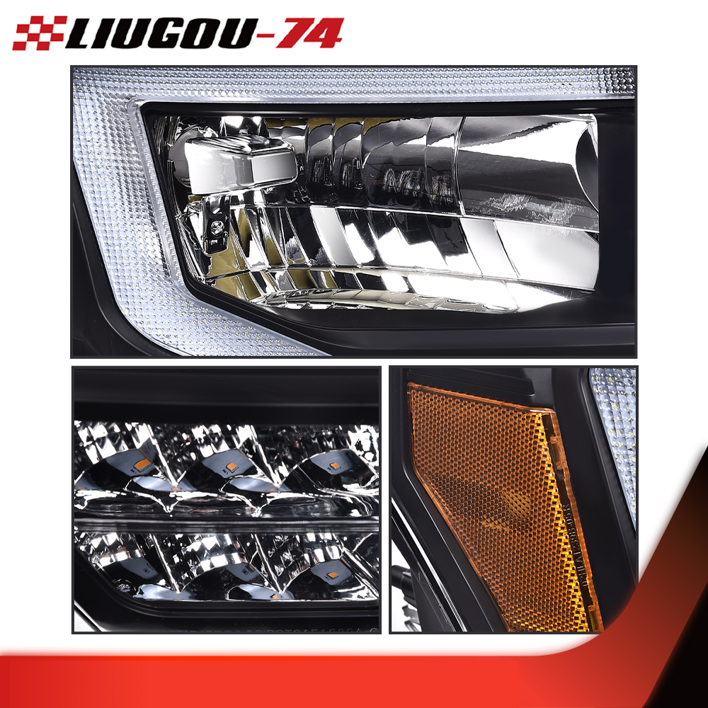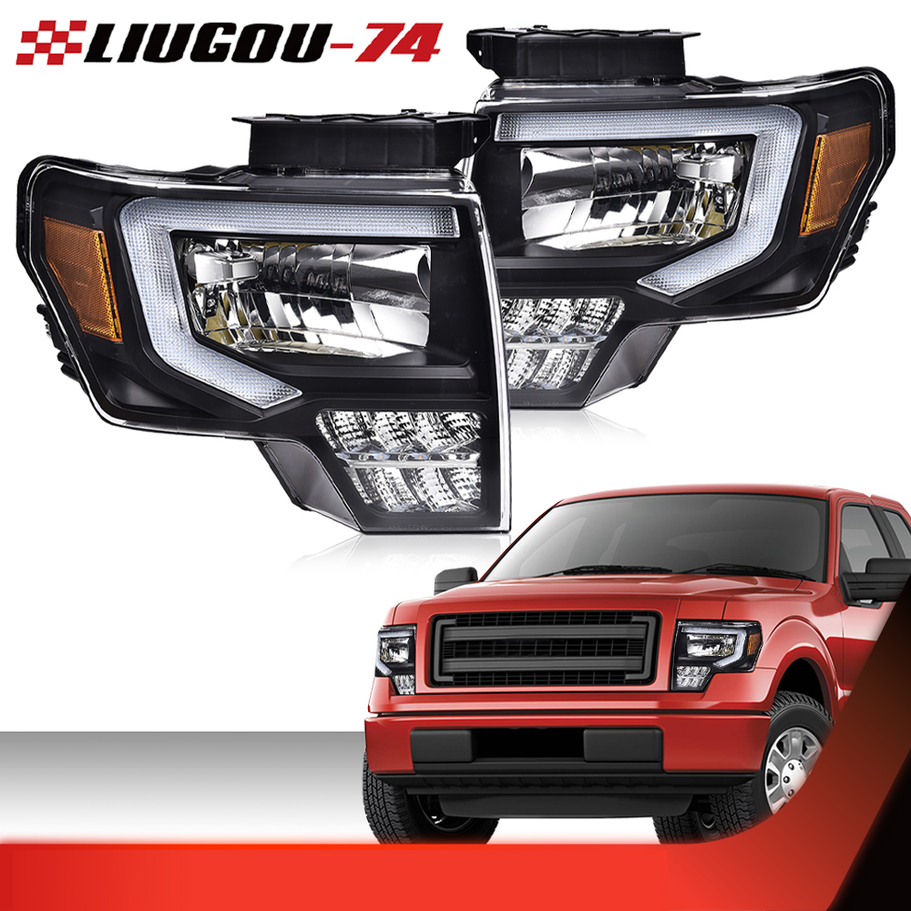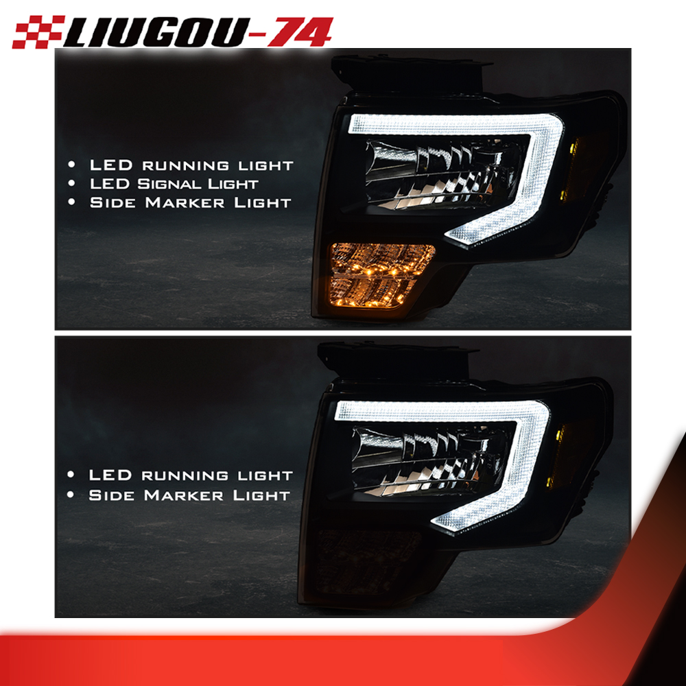 Fit For 2009-2014 Ford F-150 Truck LED DRL Tube Headlights HeadLamps Left+Right