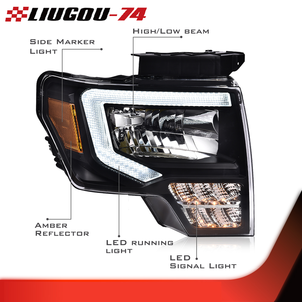 Fit for 2009-2014 Ford F150 Only Fits for Models with Halogen Headlights without Projector Daytime Running Light Bar Requires Wiring into Existing Lighting Harness