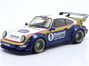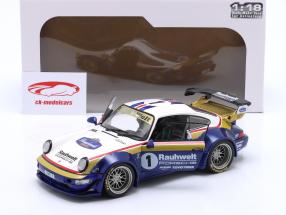 | Porsche 911 (964) RWB Rauh-Welt 2022 blau / weiß / rot / gold 1:18 Solido | Porsche 911 (964) RWB Rauh-Welt 2022 blue / white / red / gold 1:18 Solido |