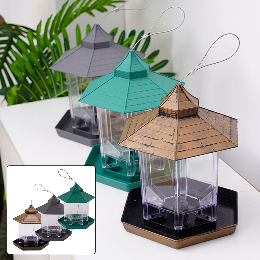 * Conception de style gazebo : construite avec du plastique pour , cette mangeoire à oiseaux présente un design de gazebo élégant avec un toit incliné qui offre ombre et pour protection contre le soleil et la pluie. Le port d'alimentation de style plateau et le perchoir circulaire permettent aux oiseaux de se nourrir pour sous tous les angles.