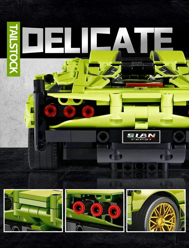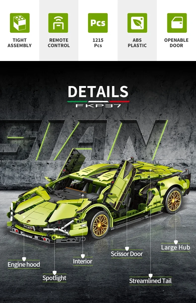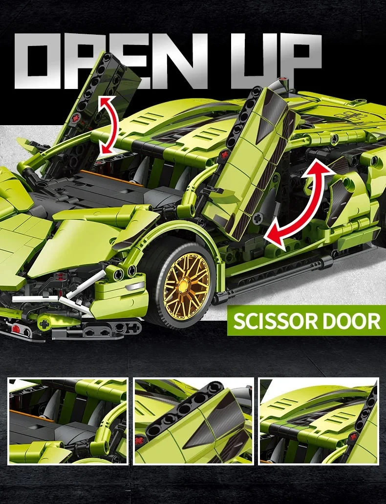 1,280 pieces contain 72 kinds of professional components: forged carbon fiber textured plates/honeycomb grilles/hydraulic rods