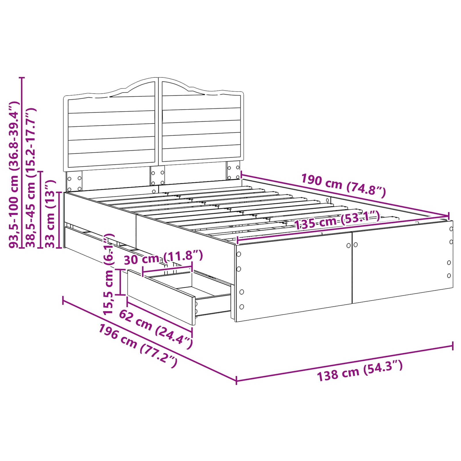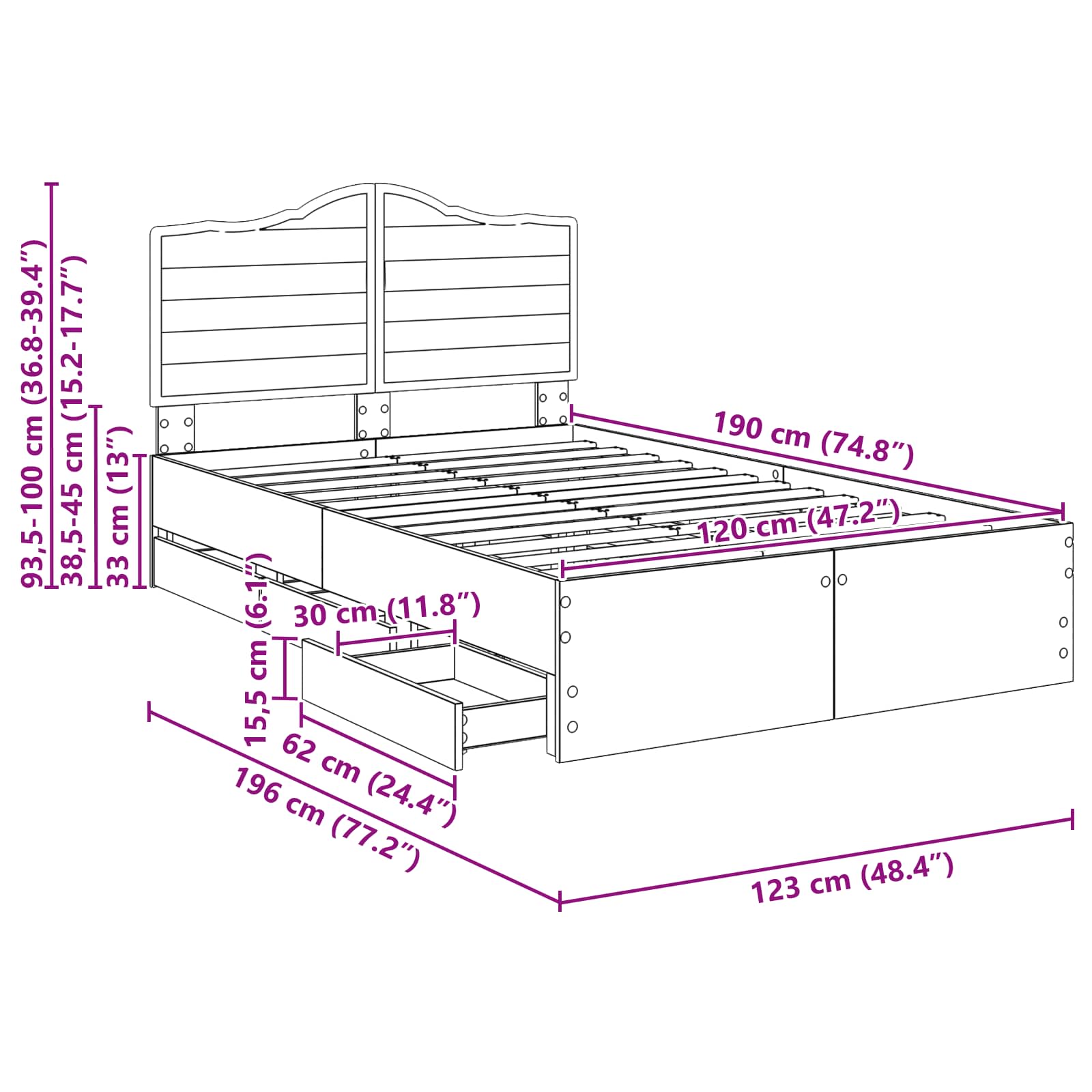 Dimensione della testiera: 123 x 3 x 100 cm (L x P x A)
