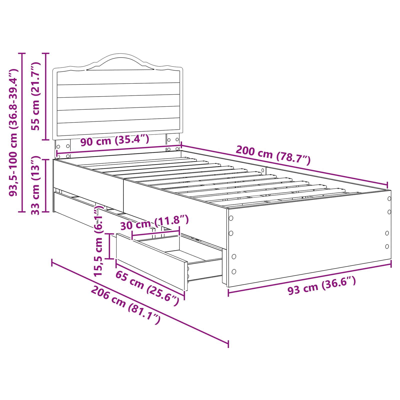 Dimensione della testiera: 78 x 3 x 100 cm (L x P x A)