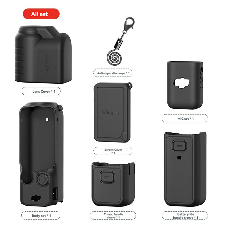 l 1x Lens Cover + 1x Anti-separation Rope + 1x Screen Cover + 1x Body set + 1x Thread handle sleeve + 1x MIC set + 1x Battery life handle sleeve