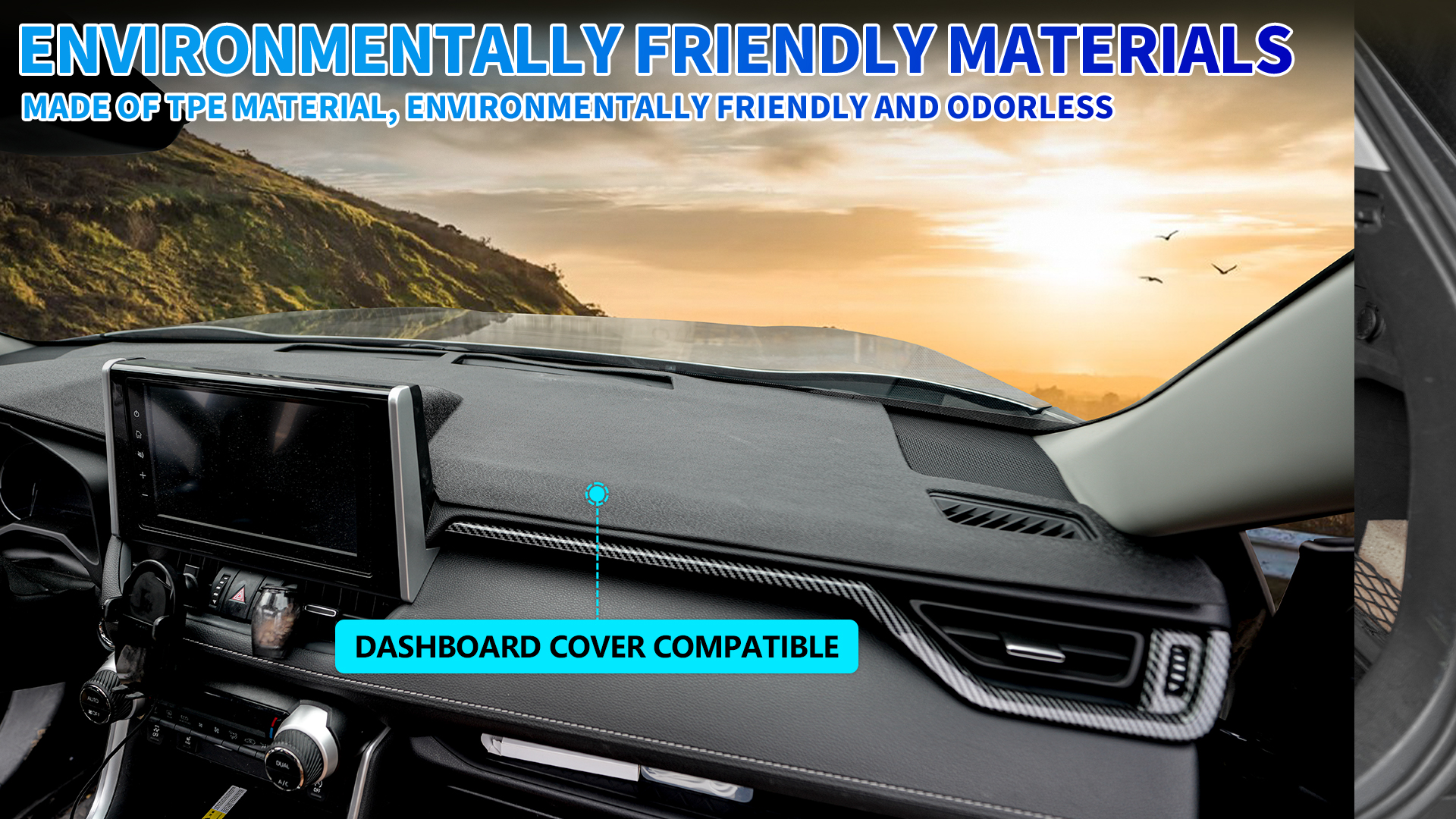 3.Efficient Function:The precise design of dash cover guarantee full coverage,and it will not affect the use of other functions.The flat surface adds a touch of elegance to your vehicle's interior.Additionally, the anti-reflective surface reduces glare, providing a clear view of the instrument panel for safe driving.Protect your dashboard from daily wear and tear with this TPE mat. Its heat-resistant properties prevent melting fading or warping due to sun , maintaining the integrity of your dashboard for years to come.