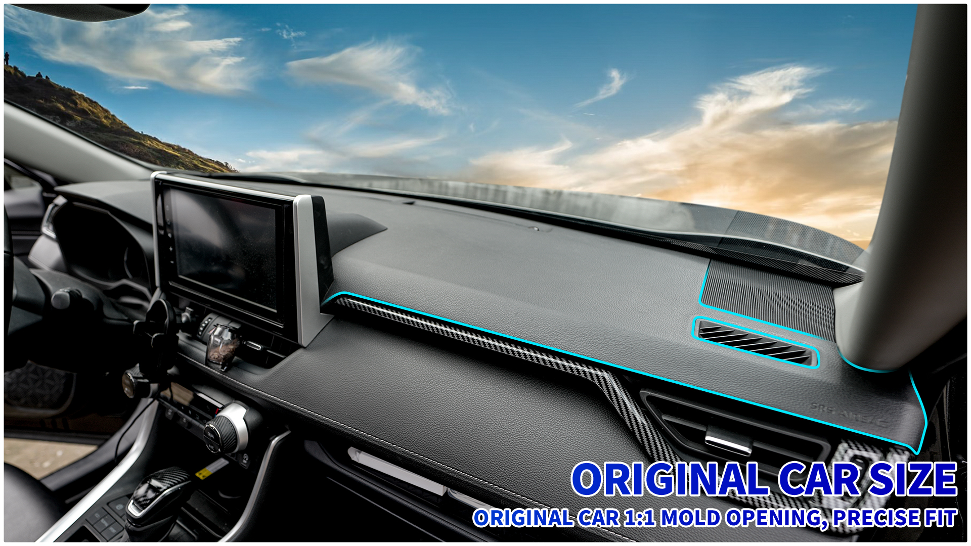 The dashboard cover is designed according to the dimensions of the original car and perfectly fits the curve of the instrument panel.It’s compatible with 2019 2020 2021 2022 2023 2024 Toyota RAV4.ATTENTION:If your car come with Head-up Display, this cover will not fit your vehicle.Please ensure that you check the vehicle model thoroughly before making a purchase.