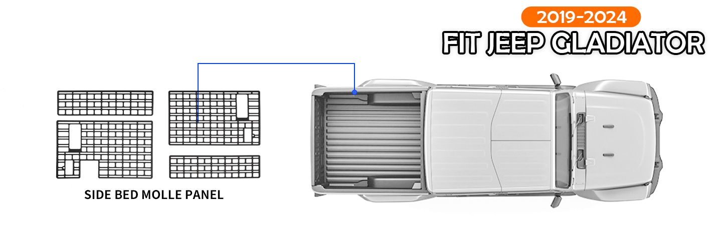 1.Fitment: The side bed molle panels are perfectly compatible with 2019 2020 2021 2022 2023 2024 Jeep Gladiator JT. They will fit the original truck well.