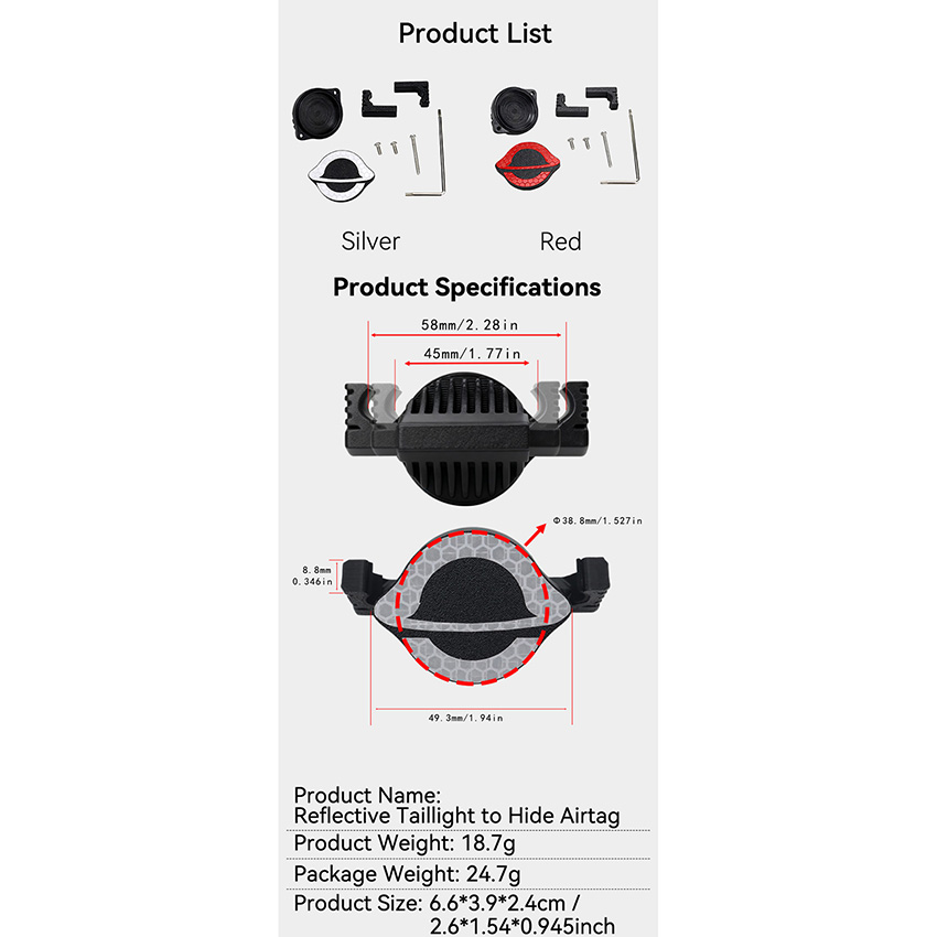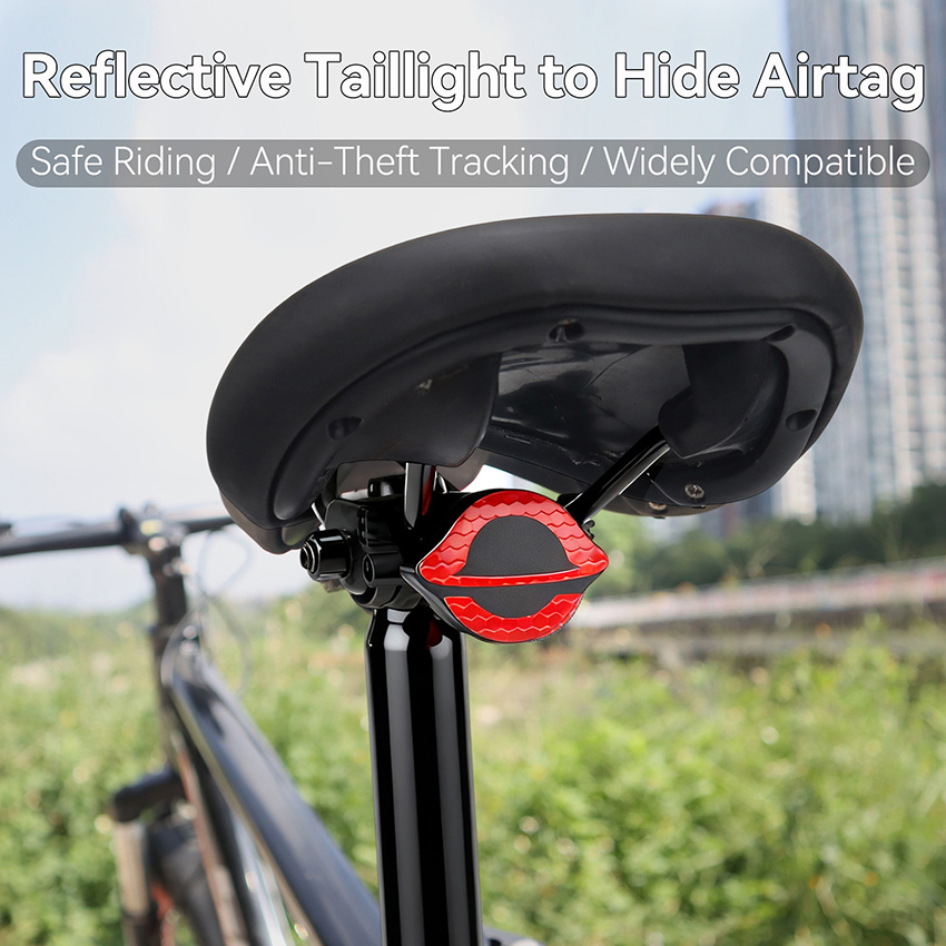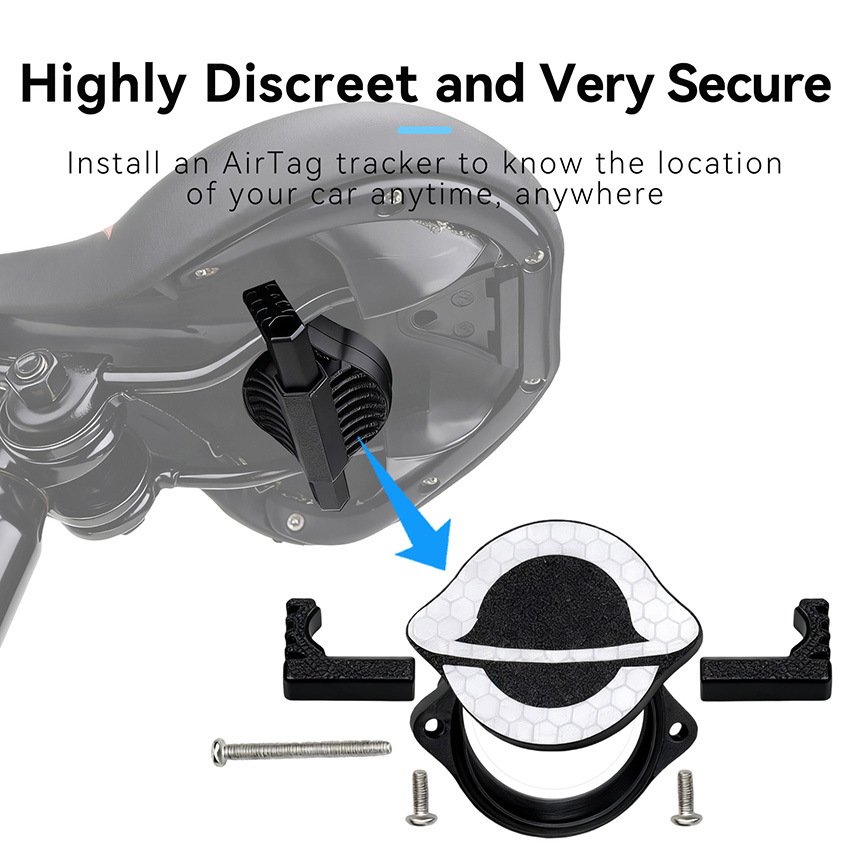 l Install AirTag locator to track your bike's location anytime, anywhere. Enhanced waterproofing with rubber seal for daily use—no worries about water ingress. Reflective panel reduces nighttime riding hazards for enhanced safety