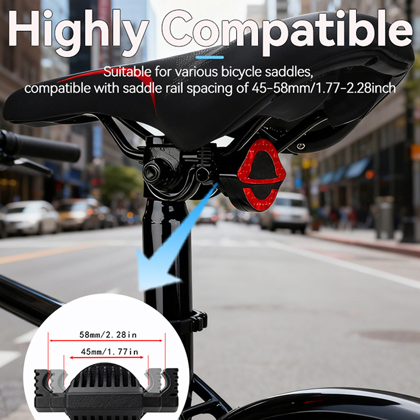 l Compatible with various bicycle seat designs. Fits seat arch brackets with 45-55mm spacing. Secure with specialized anti-theft screws. Tamper-proof design requires dedicated tools for removal. High concealment. Multiple mounting options