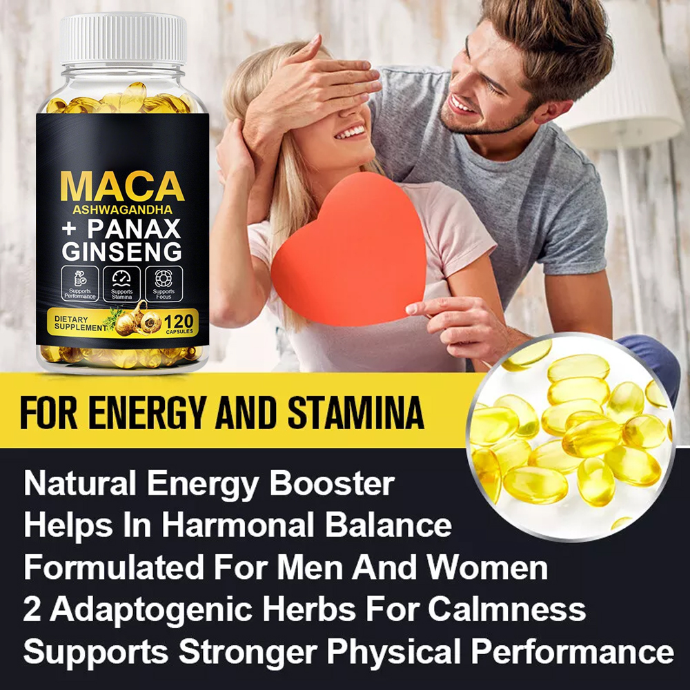 Maca + Ashwagandha + Ginseng , a powerful blend of 10000mg Maca Root Capsules (20X MORE STRENGTH) + 1400mg