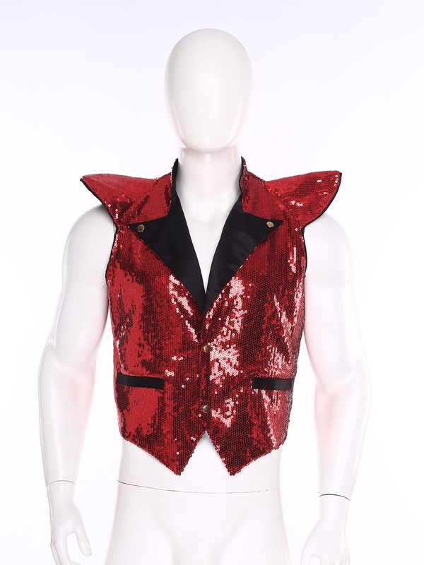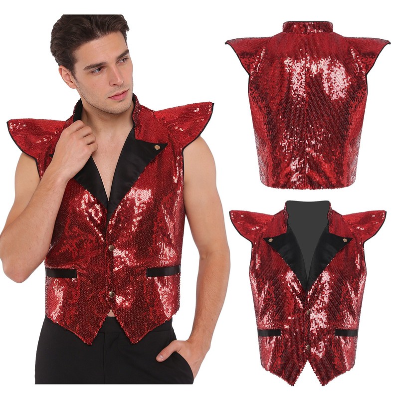Crafted from a blend of polyester and sequins, this vest offers durability and a dazzling sparkle, ensuring a comfortable yet eye-catching fit for men.