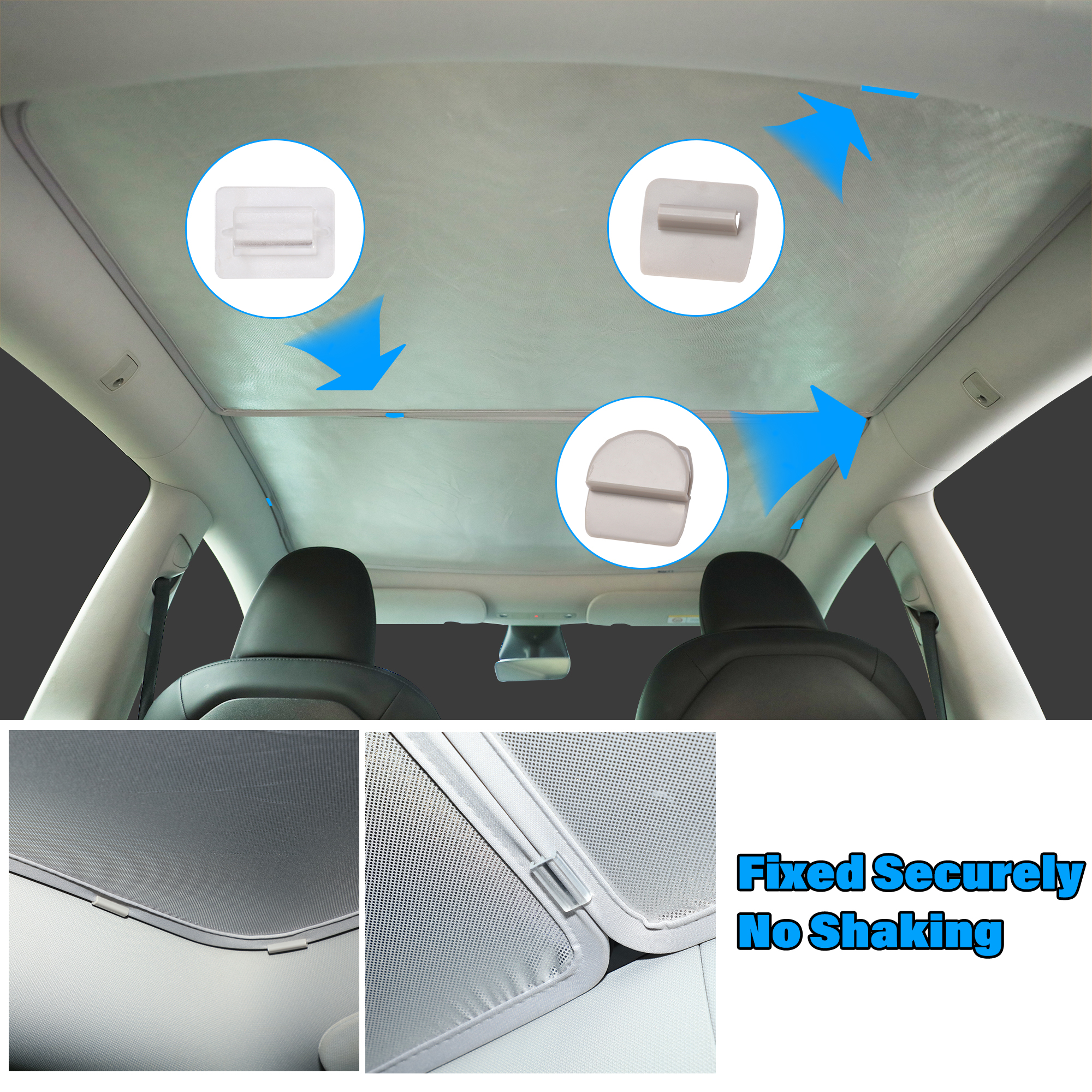 [Custom Designed for 2025 New Model Y Juniper] roof sunshade perfectly fits for 2025 Tesla New Model Y Juniper. Using 3D laser mapping technology, designed according to 1:1 model of original roof, precisely matching the curvature of the Model Y sunroof, ensuring seamless fit along every edge to block light leakage, providing comprehensive sun protection