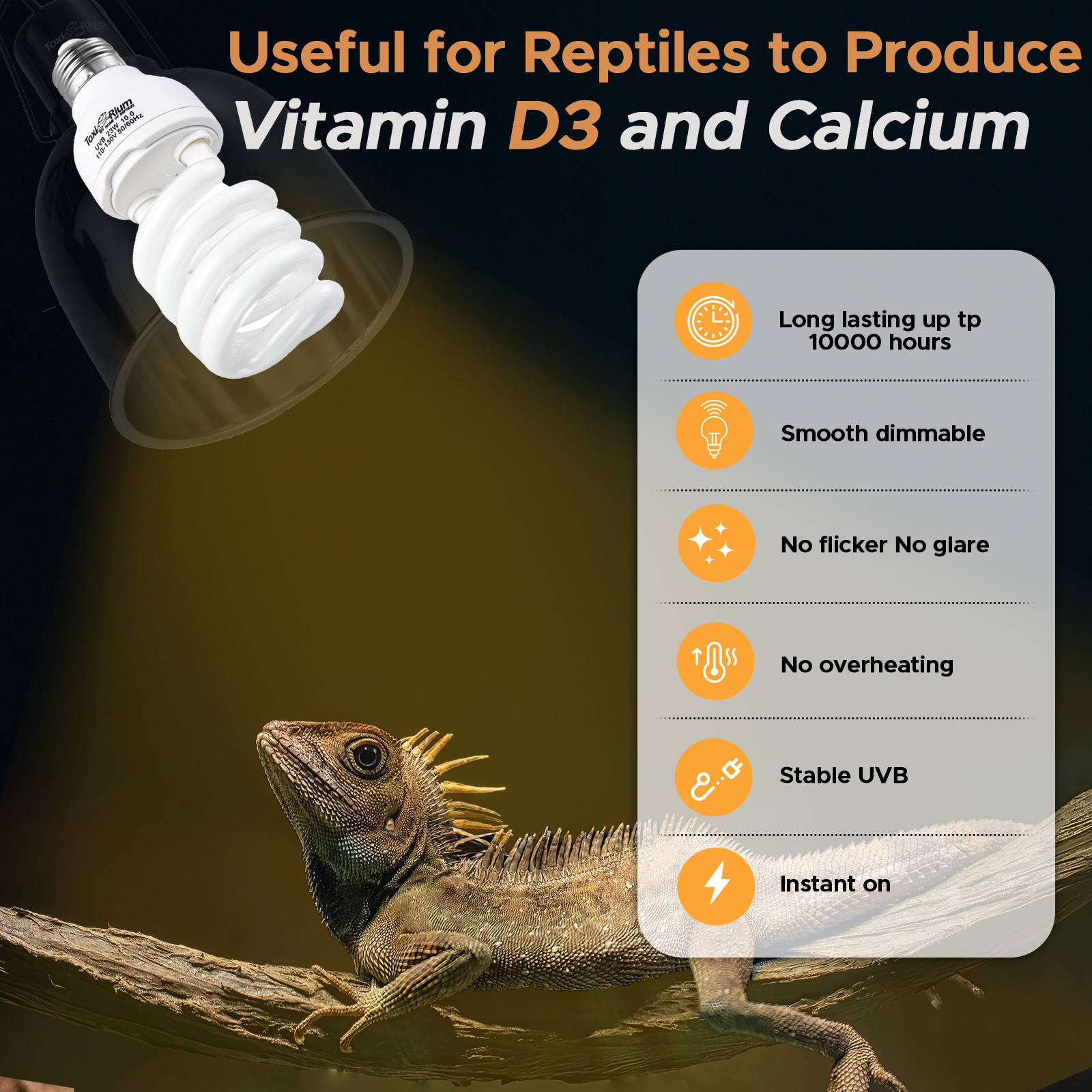 - Promotes Reptile Health: Provides essential UVB rays to support Vitamin D3 production and calcium absorption, preventing metabolic bone disease.