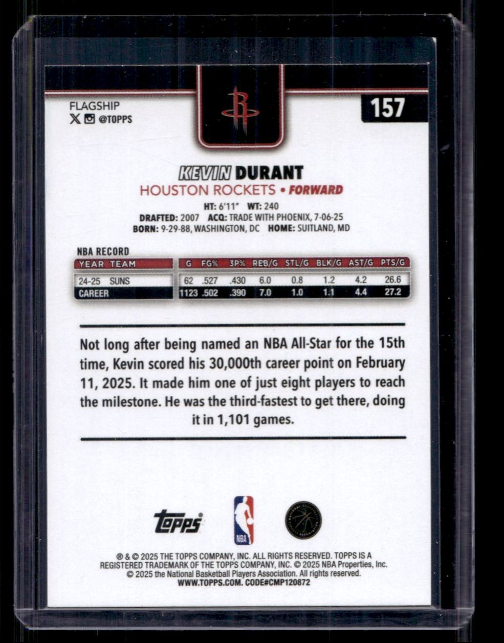 | 2025-26 Topps Kevin Durant Houston Rockets #157 |