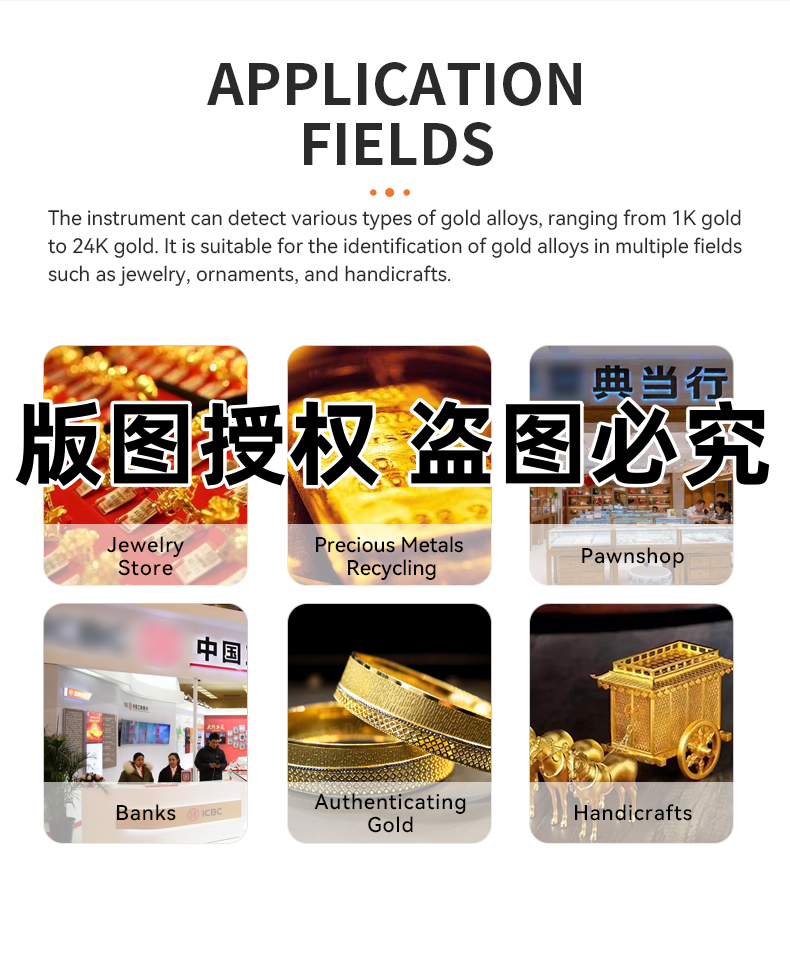 can detect a variety of gold types, including 1K gold to 24K gold, suitable for jewelry, jewelry, handicrafts and other fields of gold identification.