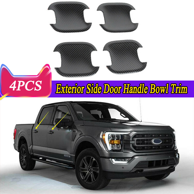 4P Carbon ABS Exterior Door Handle Bowl Cover Trim For Ford F150 F-150 2021-2024