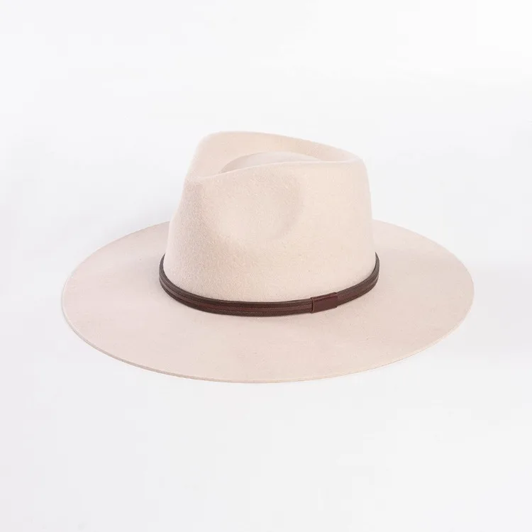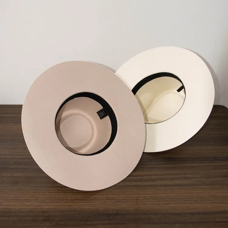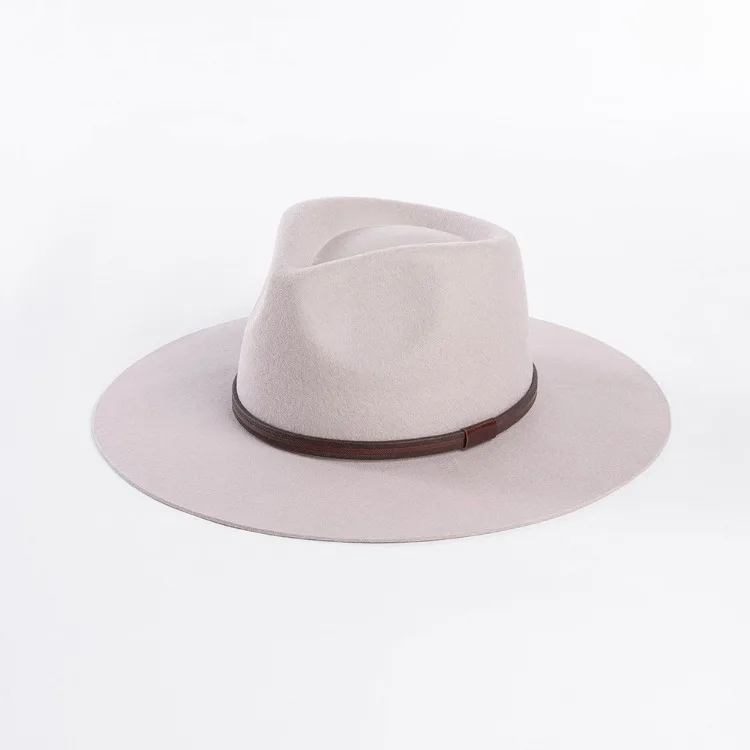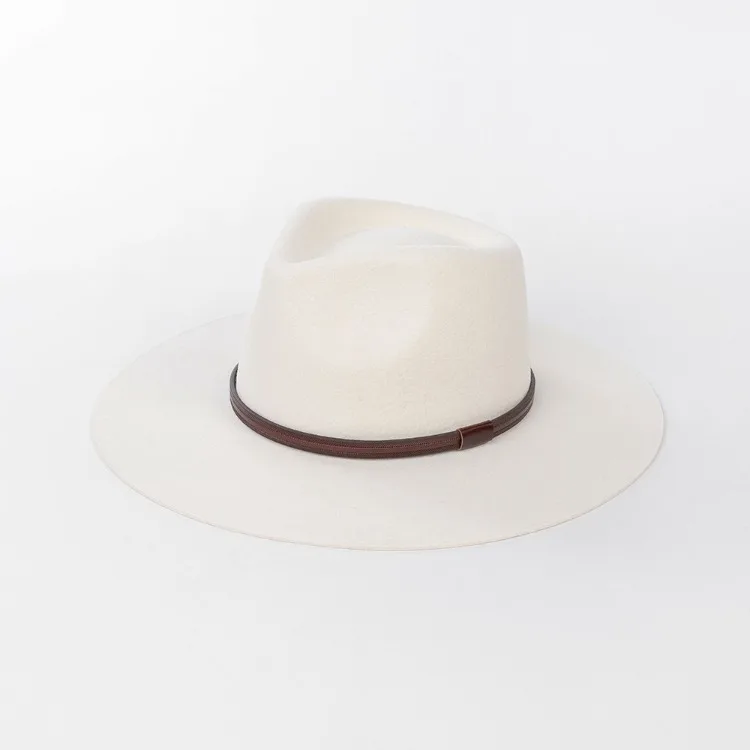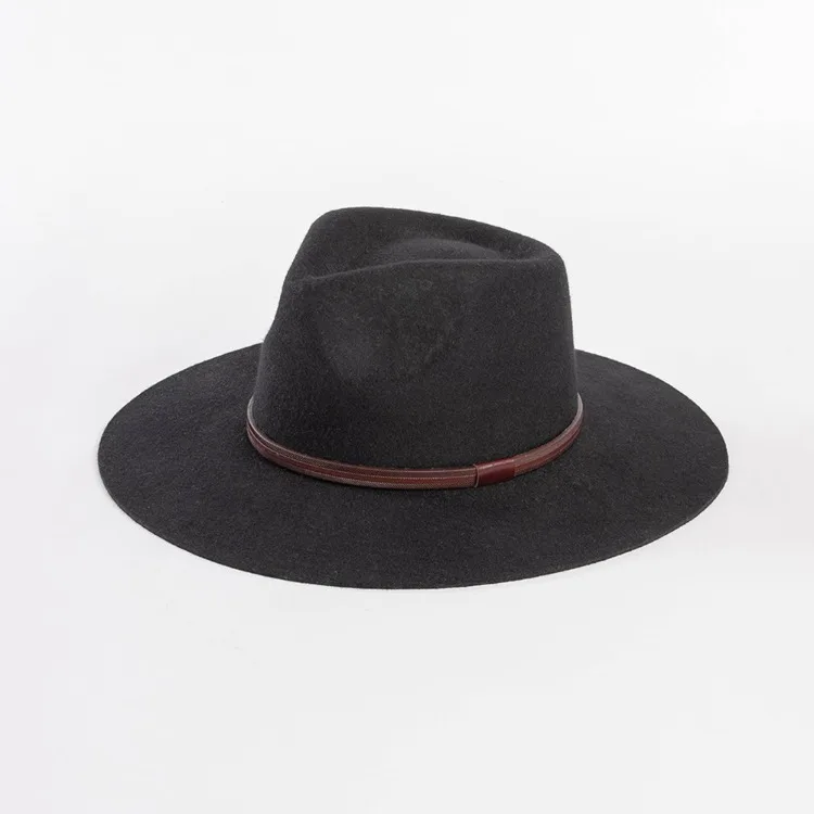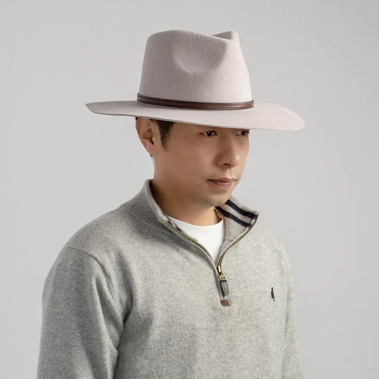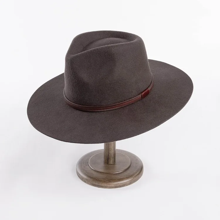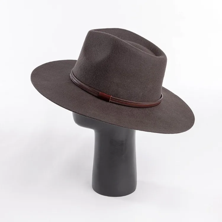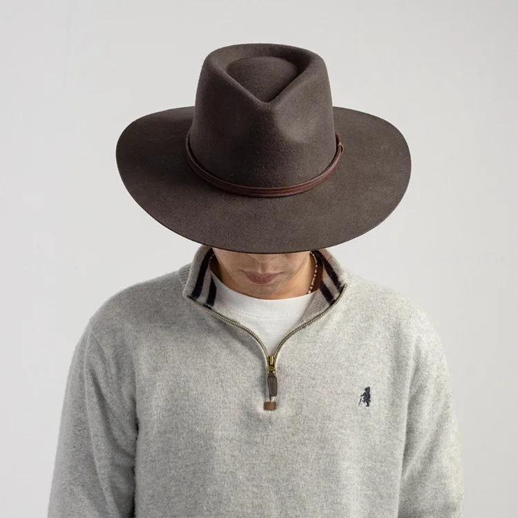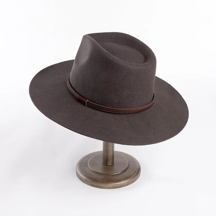 Fashion Vintage Brown Wool Fedora Hat with Belt for Women Men Autumn Winter Unisex Wide Brim Warm Felt Hat