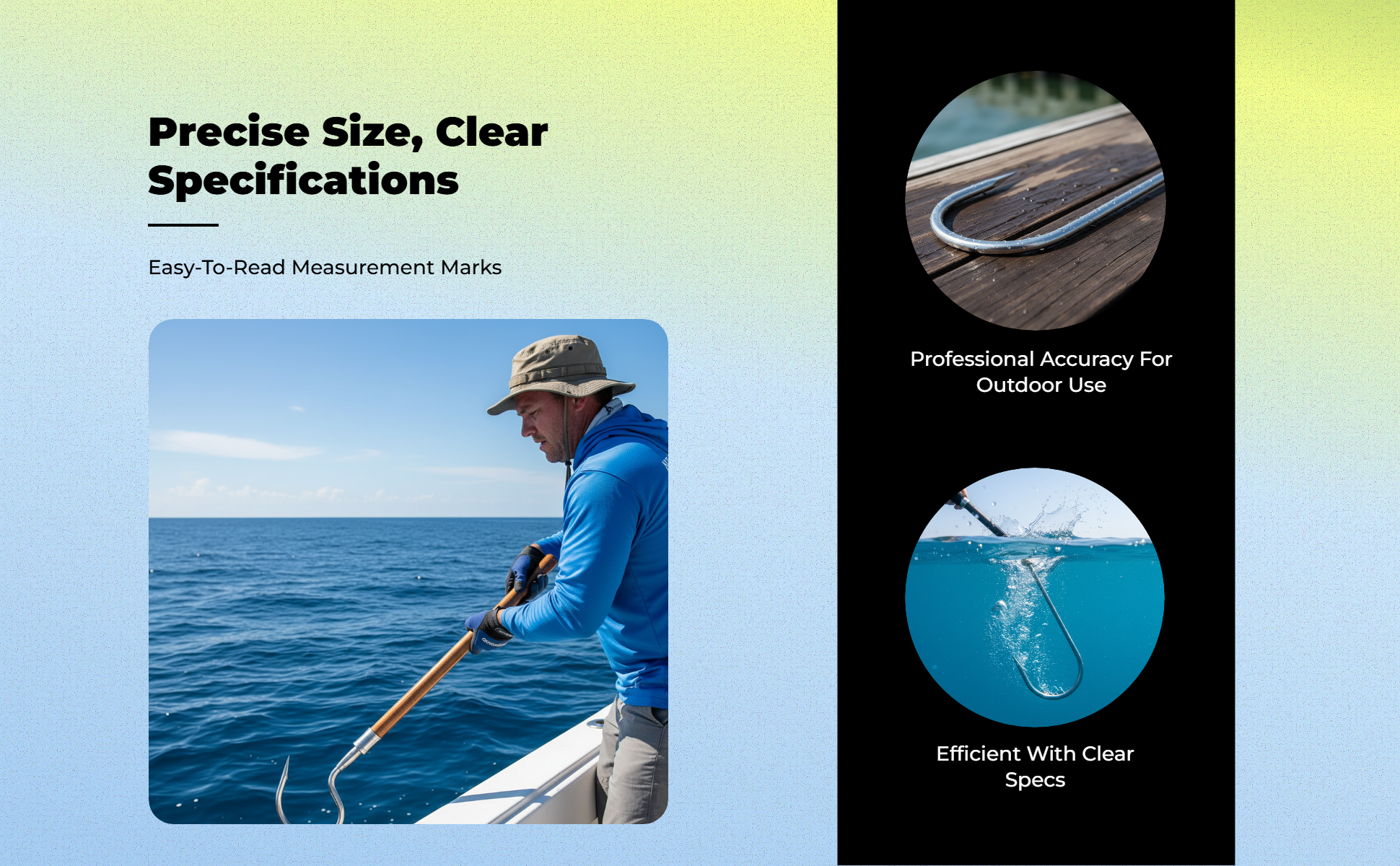【adaptable Telescopic Fishing Gaff】This telescopic fishing gaff with stainless steel hook is designed for saltwater and freshwater fishing, making it perfect for boat, kayak, and outdoor use. The resistant hook ensures secure grip on large fish. 【sturdy Duty sturdy】Constructed from high-strength stainless steel, this fishing gaff offers durability and toughness, suitable for catching big fish in various fishing environments. 【Portable & Easy to Use】The telescopic design allows for easy storage and transport, making it convenient for outdoor fishing trips. The ergonomic handle provides a comfortable and secure grip. 【 】The stainless steel hook is extremely and ensuring dependable performance in both saltwater and freshwater conditions. 【Multiple Specifications & Random designs】Available in multiple specifications and random hook designs, this fishing gaff meets different fishing needs. Please note: hook design is shipped randomly.