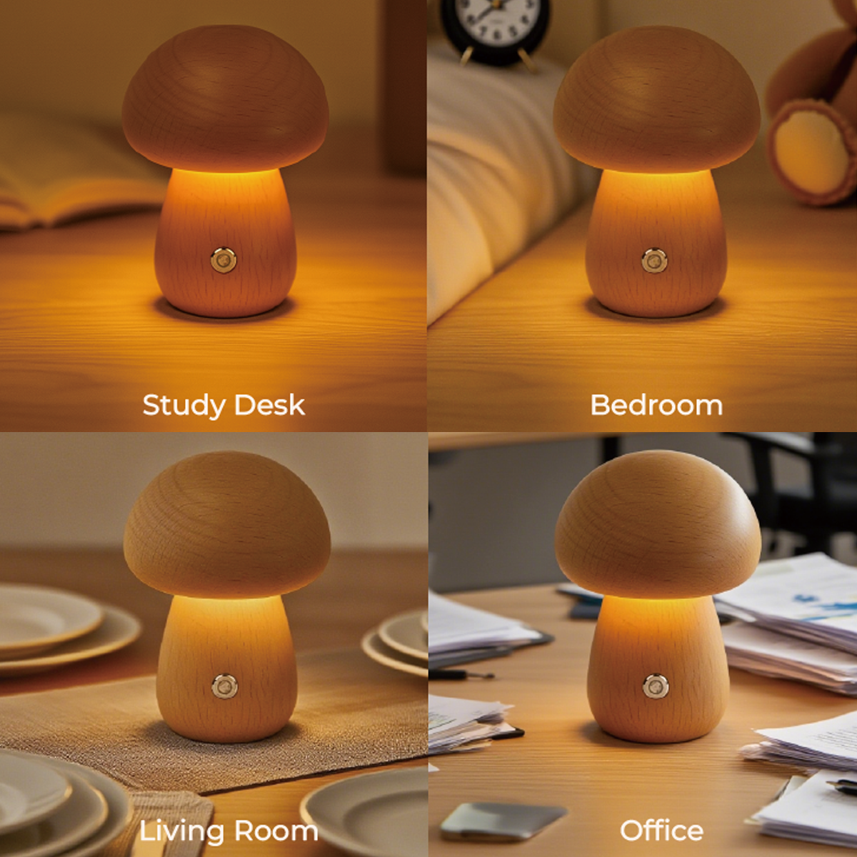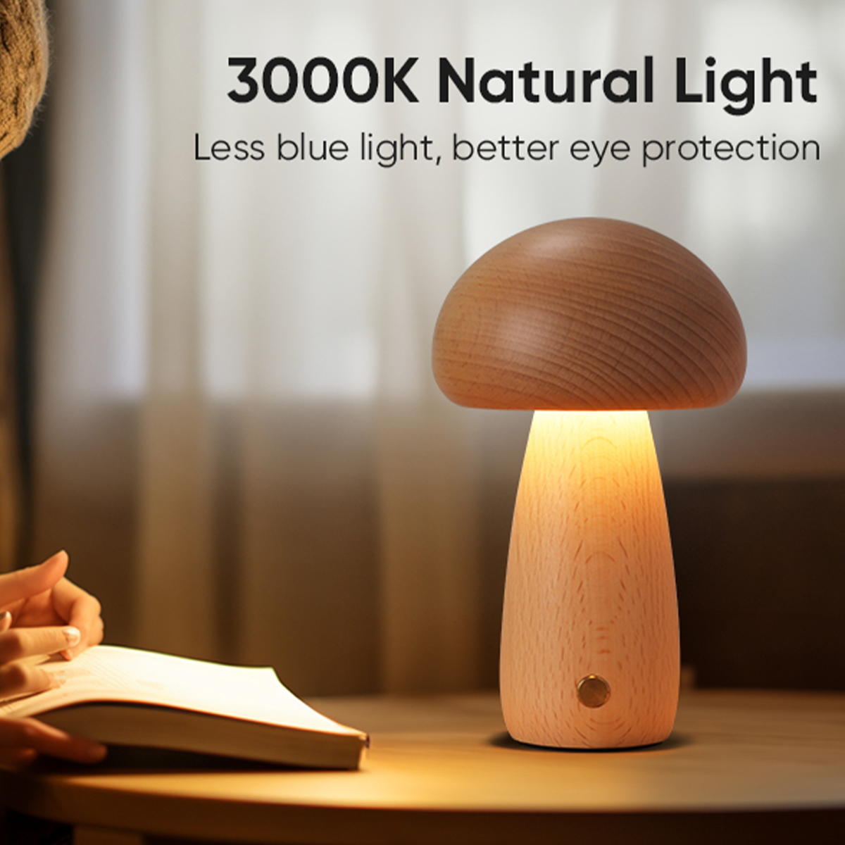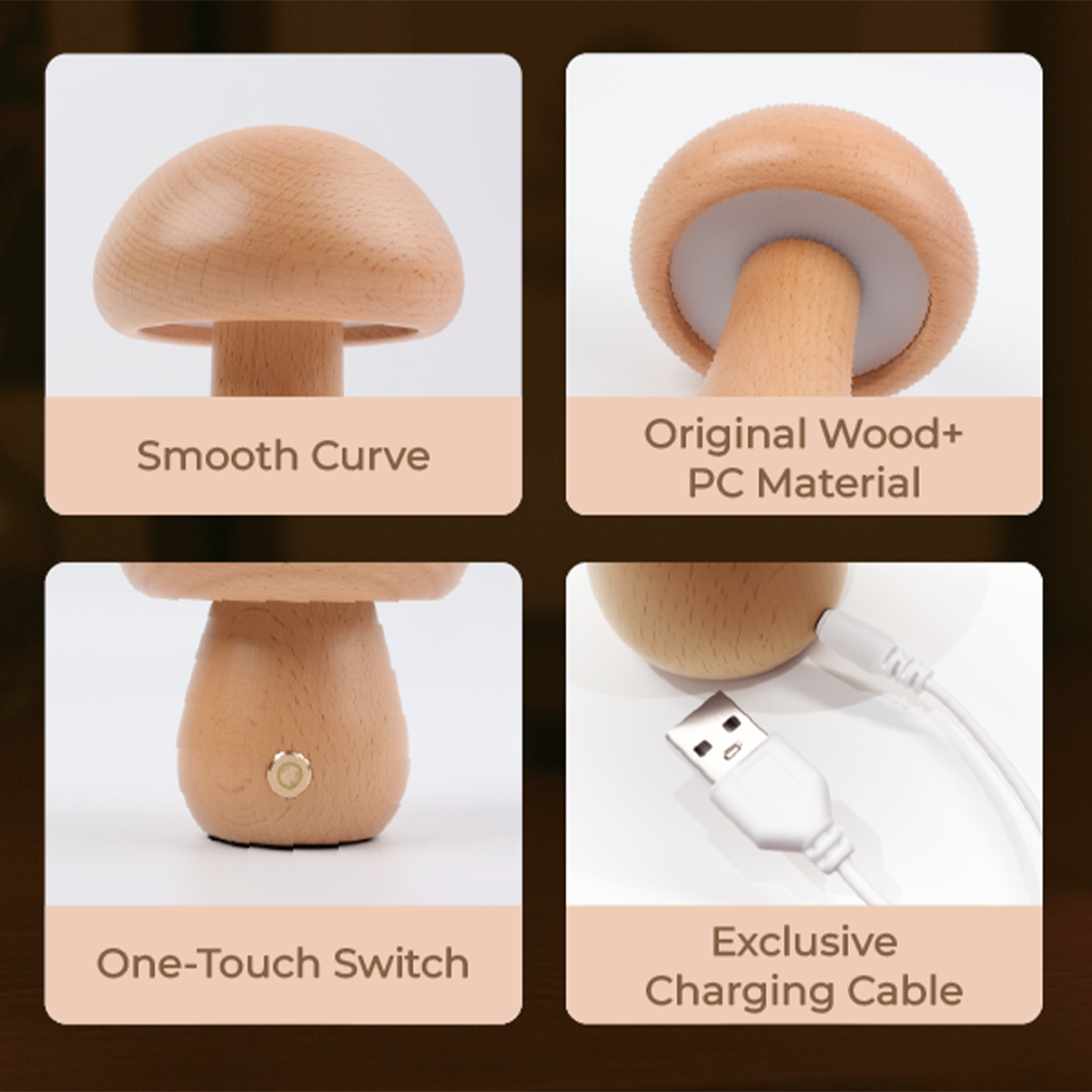 1. MADE OF HIGH-QUALITY BEECH WOOD: natural wood grain, fine and smooth texture. Safe and environmentally friendly, suitable for children.The unique mushroom shape is round and cute, and it is a good decoration even when the lights are turned off.