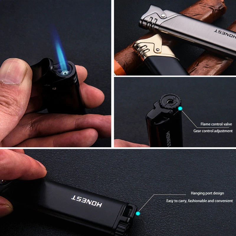 Metal Windproof JET Lighter Flame Torch With Cigar Punch Gas Butane Refillable