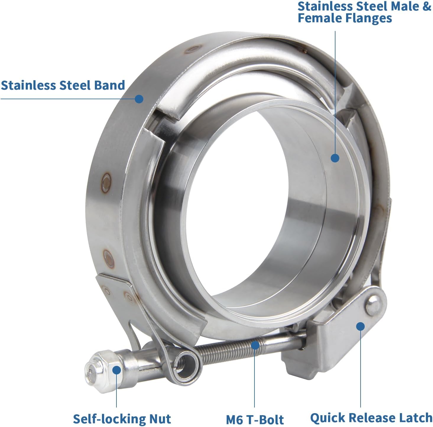 [QUICK RELEASE] These V-band clamps epuipped with quick release joint, easy to install and remove perfect for applications requiring frequent removals and provide a great seal with even pressure at the flange.