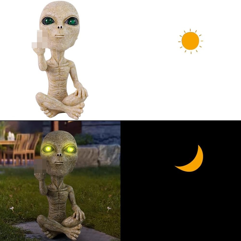Diese einzigartige Alien-Figur ist mehr als nur eine gewöhnliche Gartendekoration! Tagsüber ein interessanter Blickfang, verwandelt sie sich bei Dunkelheit in eine stimmungsvolle Lichtquelle. Platzieren Sie die Figur an einem sonnigen Ort, um optimale Aufladung zu gewährleisten.