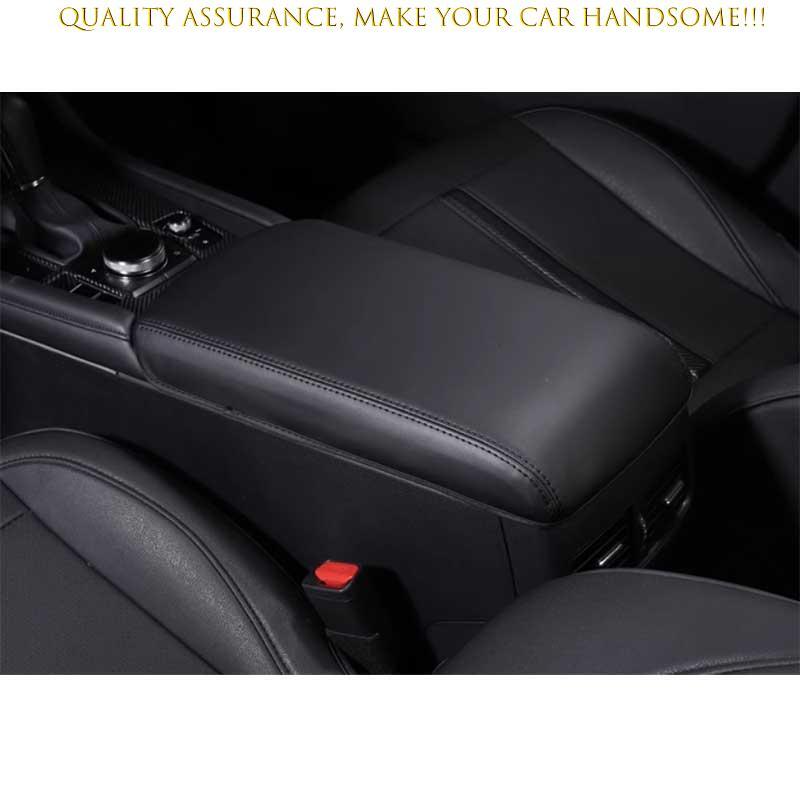 Black Leather Center Console Armrest Lid Cover Trim For Mazda 3 Axela 2019-2024