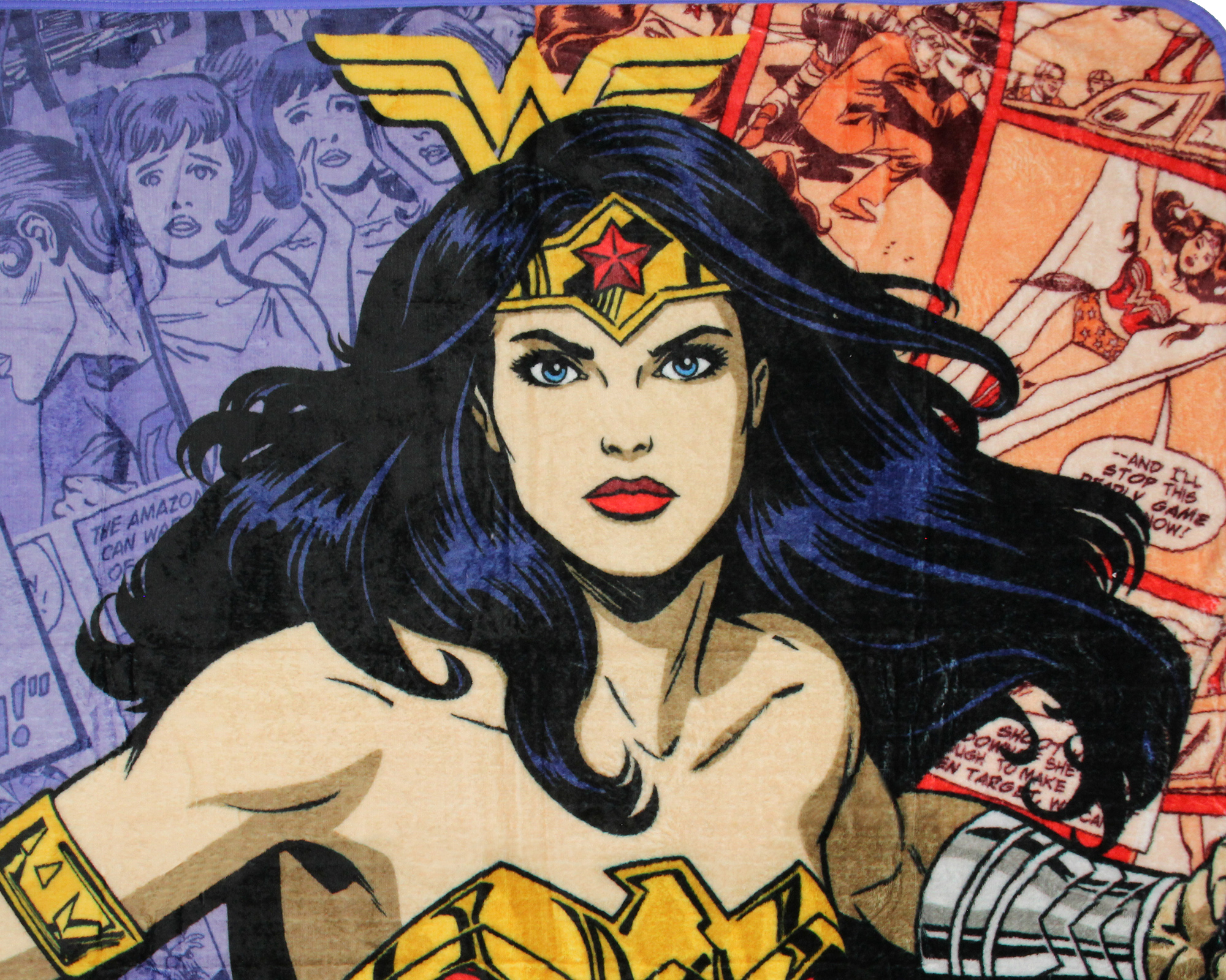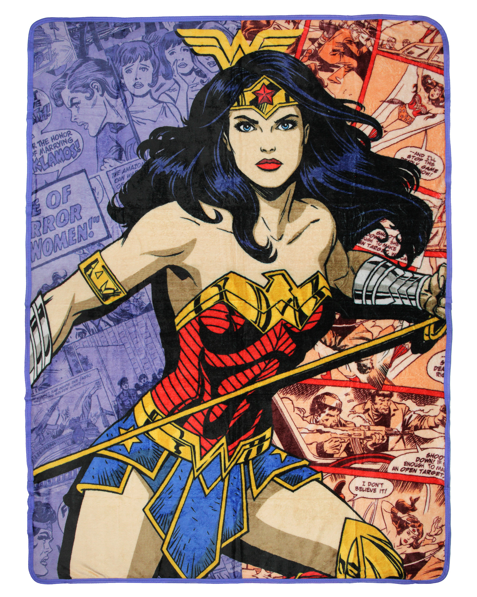 Bold In-Fabric Design - This throw blanket features a fun large action-packed graphic of Wonder Woman posed and ready for action. Wonder Woman also known as Diana of Themyscira or Diana Prince is set to a background inspired by pages of a comic book