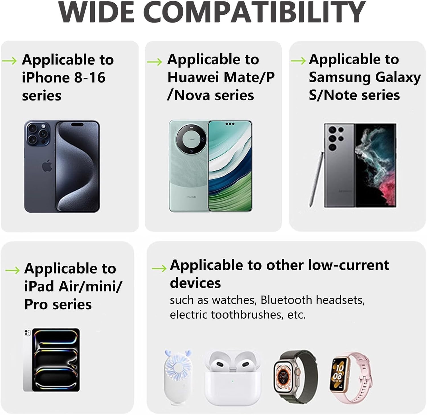 Apple iPhone (15 / 15 Pro / 15 Pro Max / 14 / 13 / 12 series)Samsung Galaxy (S21 / S22 / S23 / S24 series, Note, A series)Huawei, Xiaomi, OnePlus, Google Pixel & more USB-C devicesTablets, AirPods, Smartwatches & USB accessories