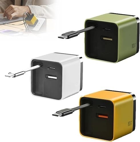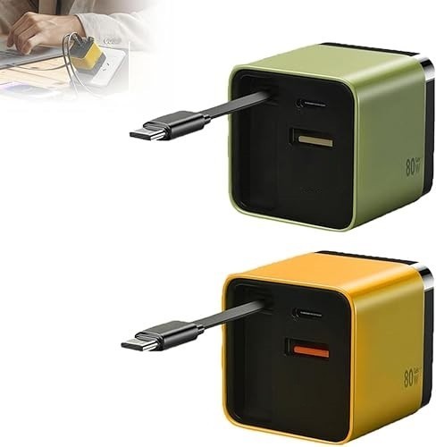 GaN USB Charger Plug UK Fast Type C 80W with Retractable Cable – PD Fast Charging Adapter for iPhone, Samsung, Huawei, Xiaomi & More