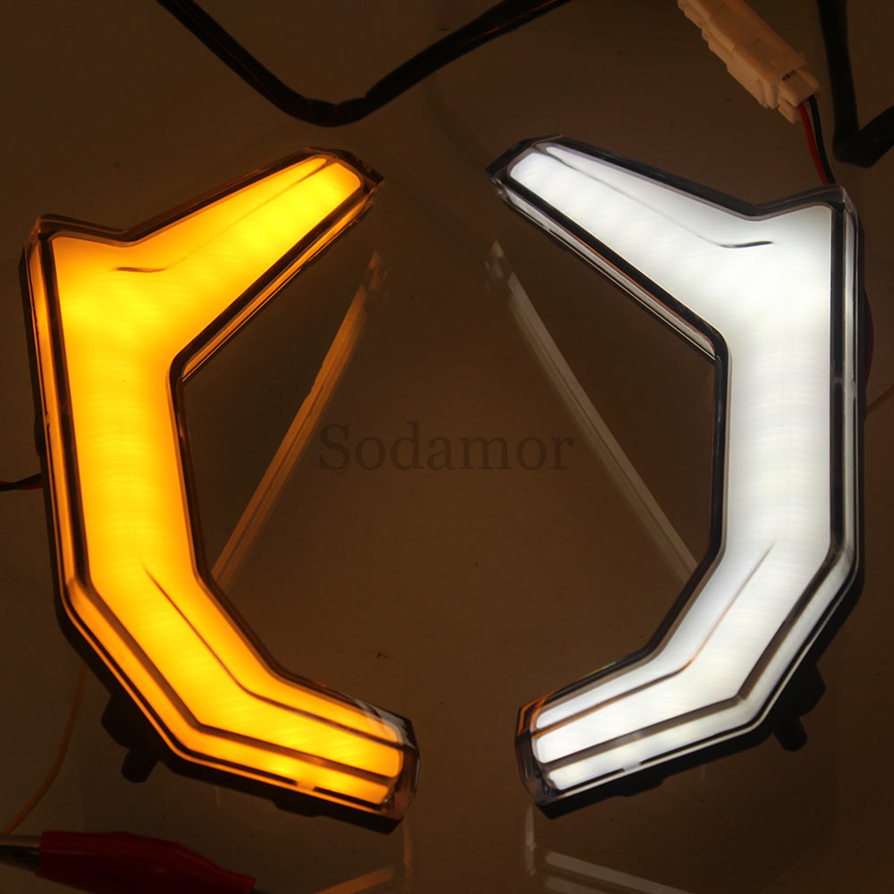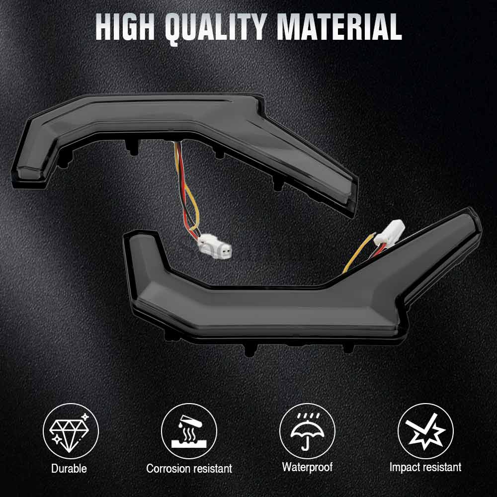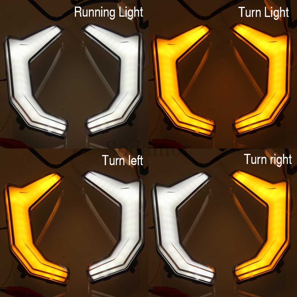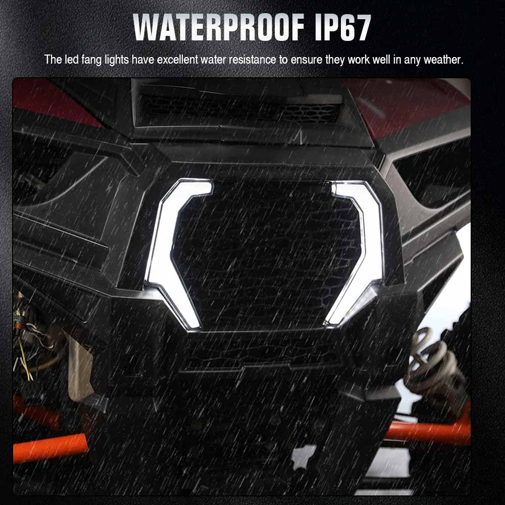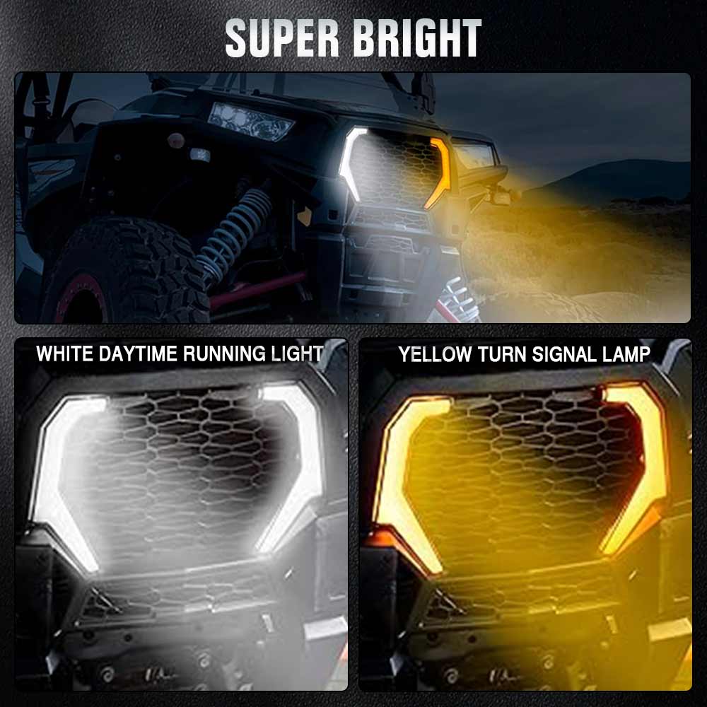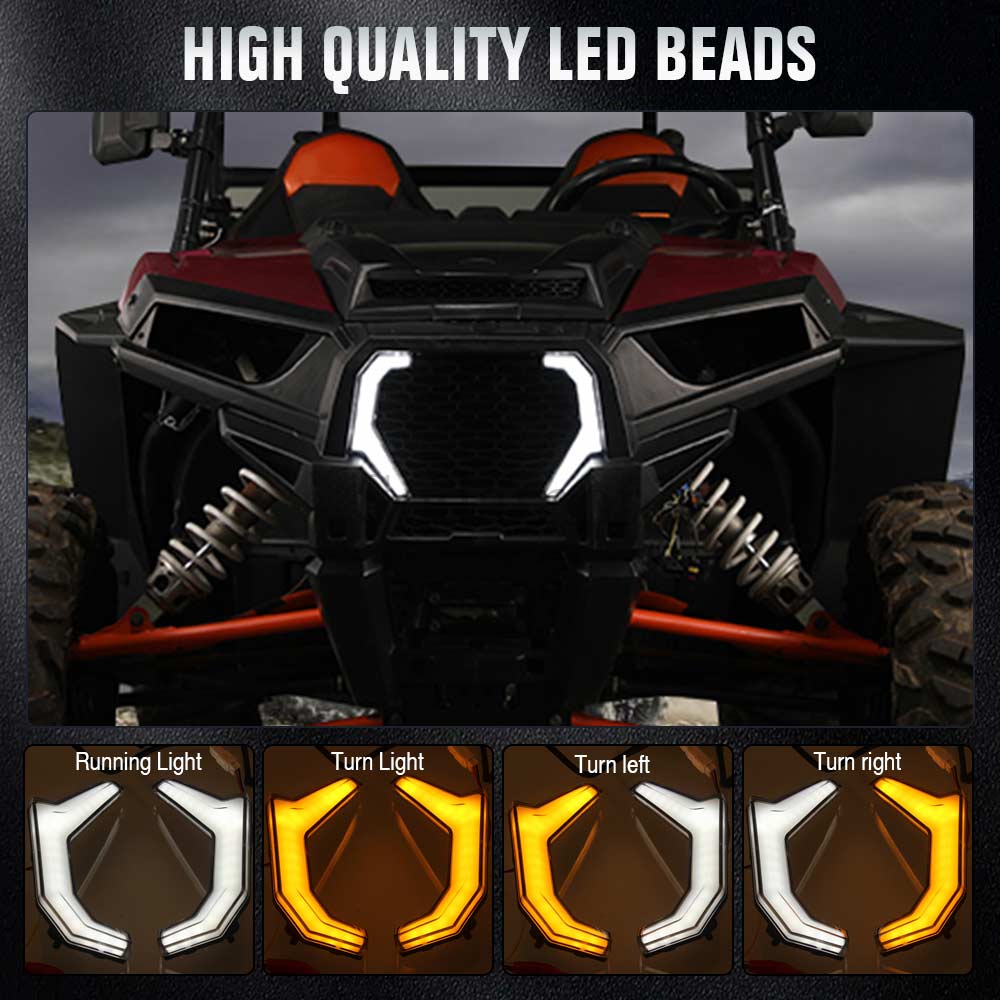 1.White daytime running light And yellow turn signal lamp projects a brighter, more powerful light beam,attract attention. Replace for the O-E-M part of RZR fang light kits,