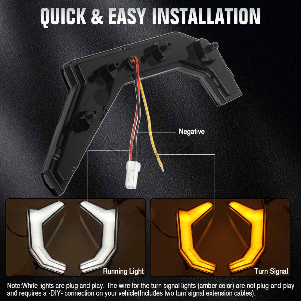 6. Quick & easy installation, Simple -plug-and-play- design allows for a quick and easy installation process. Note:White lights are plug and play. The wire for the turn signal lights (amber color) are not plug-and-play