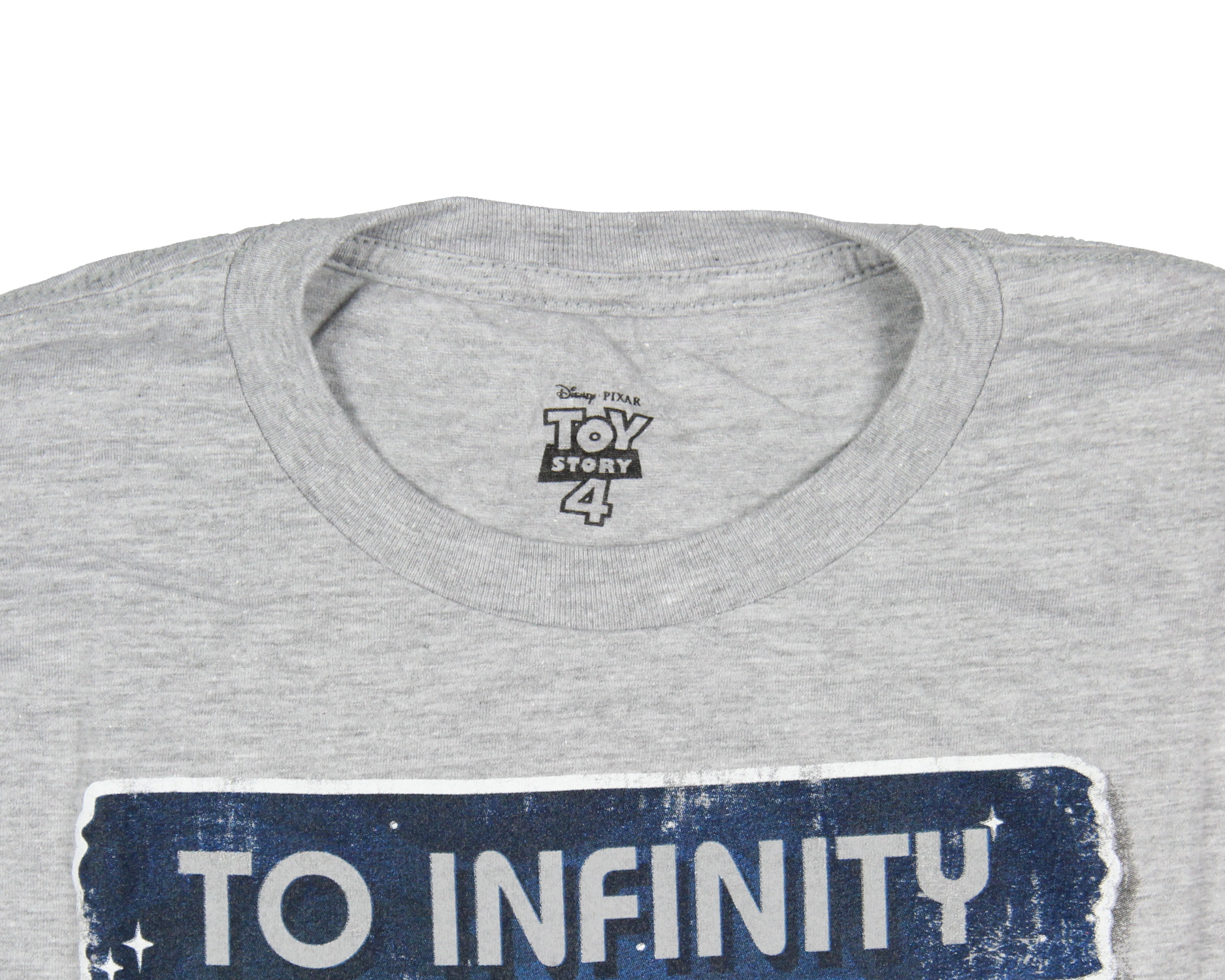 The Disney Toy Story 4 "Buzz Lightyear t-shirt is a vibrant homage to the beloved space ranger. Crafted from soft, great cotton, this shirt offers comfort and durability for everyday wear. The front features a bold, eye-catching distressed graphic of Buzz Lightyear in his space suit, striking a dynamic pose as he soars towards infinity. The design is complemented by the phrase "To Infinity and Beyond" in a playful, energetic font, capturing Buzz's adventurous spirit. Available in a variety of sizes, this t-shirt is great for fans of all ages who want to celebrate the timeless charm of Toy Story while showcasing their love for Buzz Lightyear's epic escapades. Whether for a casual day out or lounging at home, this shirt combines nostalgic flair with contemporary style, making it a must-have