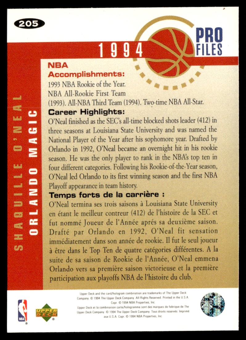 1994-95 Collector's Choice French Shaquille O'Neal Orlando Magic #205